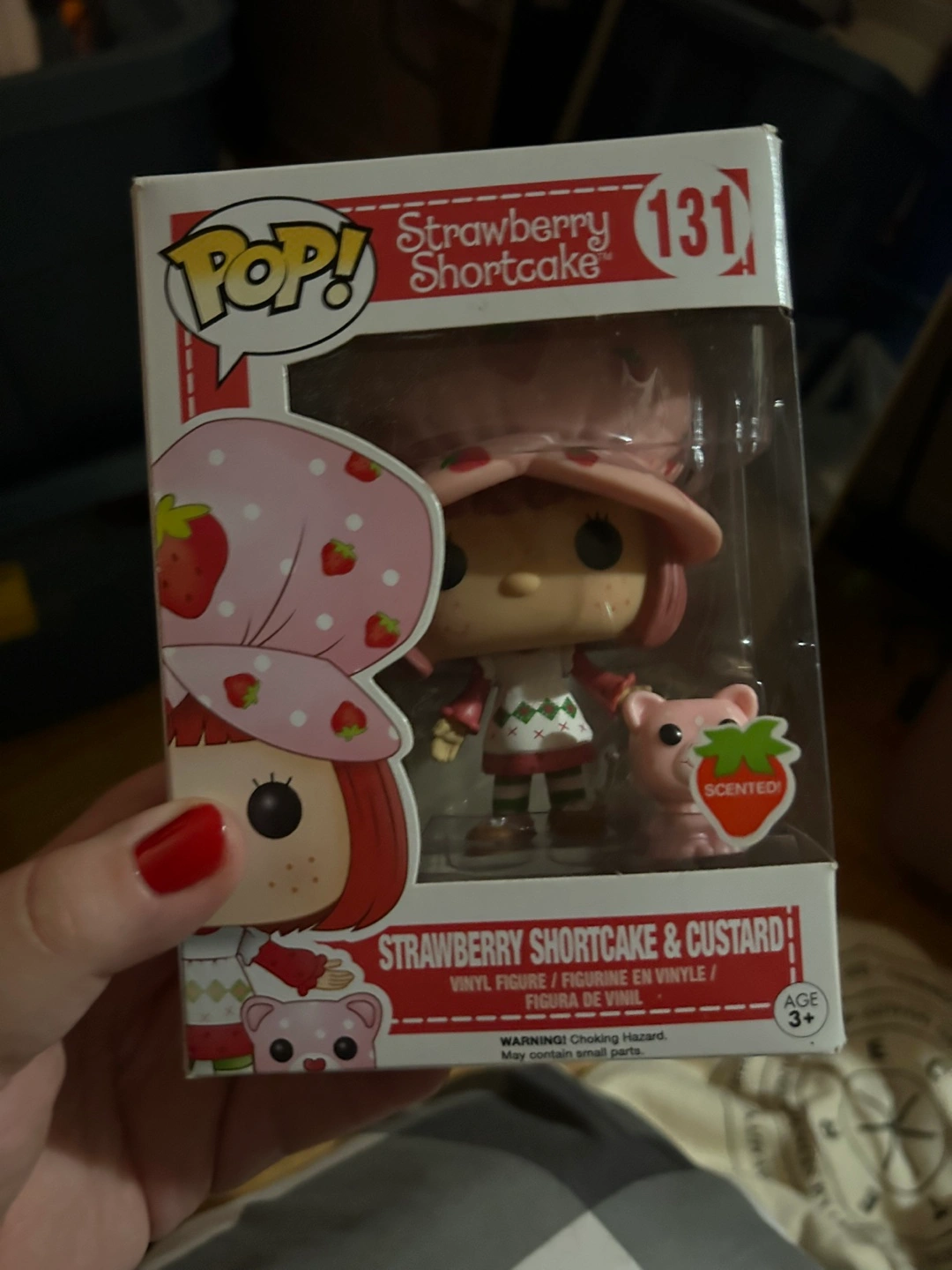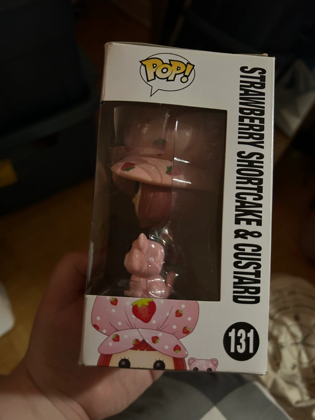 A Strawberry Shortcake Funko Pop figure, still in its box. It has a vinyl figure of Strawberry Shortcake and her bear companion. This would be a fun addition to your collection.