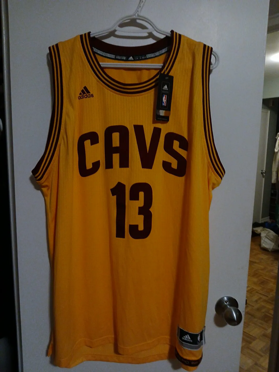 A yellow and brown basketball jersey. Jersey features the word CAVS and the number 13. A great option for any fan.