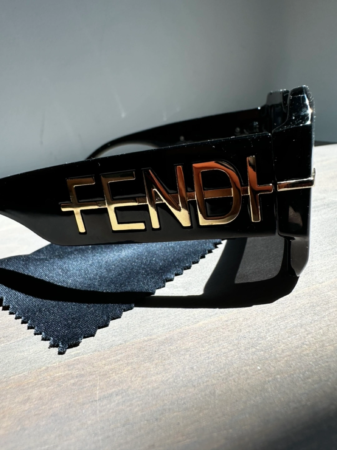 A nice pair of sunglasses with a black frame. The lenses have a dark tint. Comes with a case, and a cleaning cloth. You'll be able to relax while wearing these sunglasses on a sunny day.
