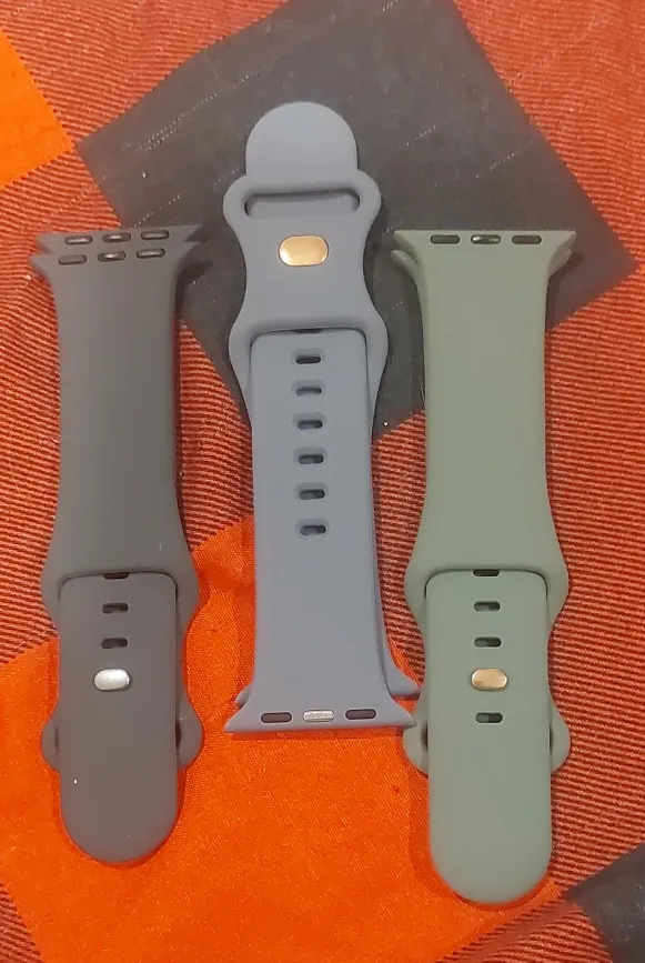 A set of three watch bands in different colours. Bands are made of a soft material. An excellent addition to any Apple Watch. You can switch up the band colour, matching with the occasion or your outfit for the day.