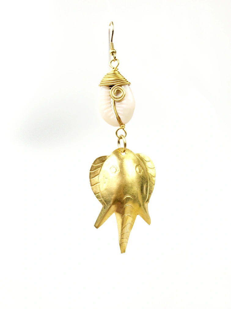 Elegant handmade African Brass Elephant earrings with cowries