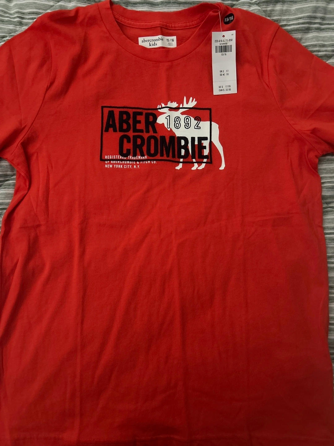 414A new with tags, red coloured t-shirt. Features a graphic design on the front. A relaxing shirt to wear any day. Teen boy rank top size 15/16 Please see size chart in listing photos