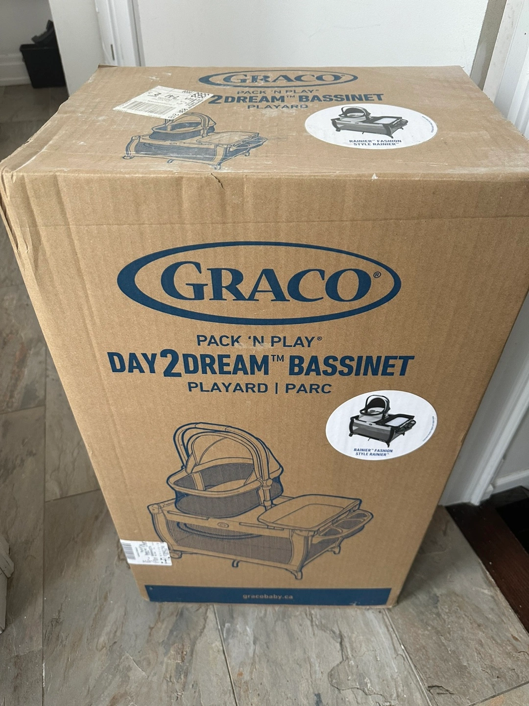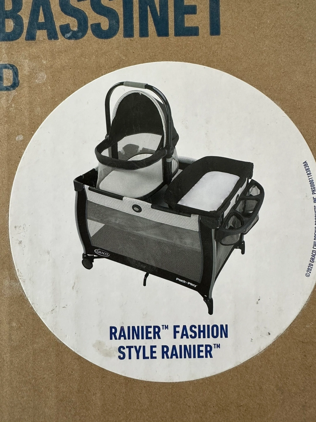 Brand new, sealed in box. Never ended up using it. The perfect spot for your little one to relax and nap. It's a Pack 'n Play with a bassinet, a changing table, and a canopy. There are also storage pockets and wheels. This is a great item for any parent.