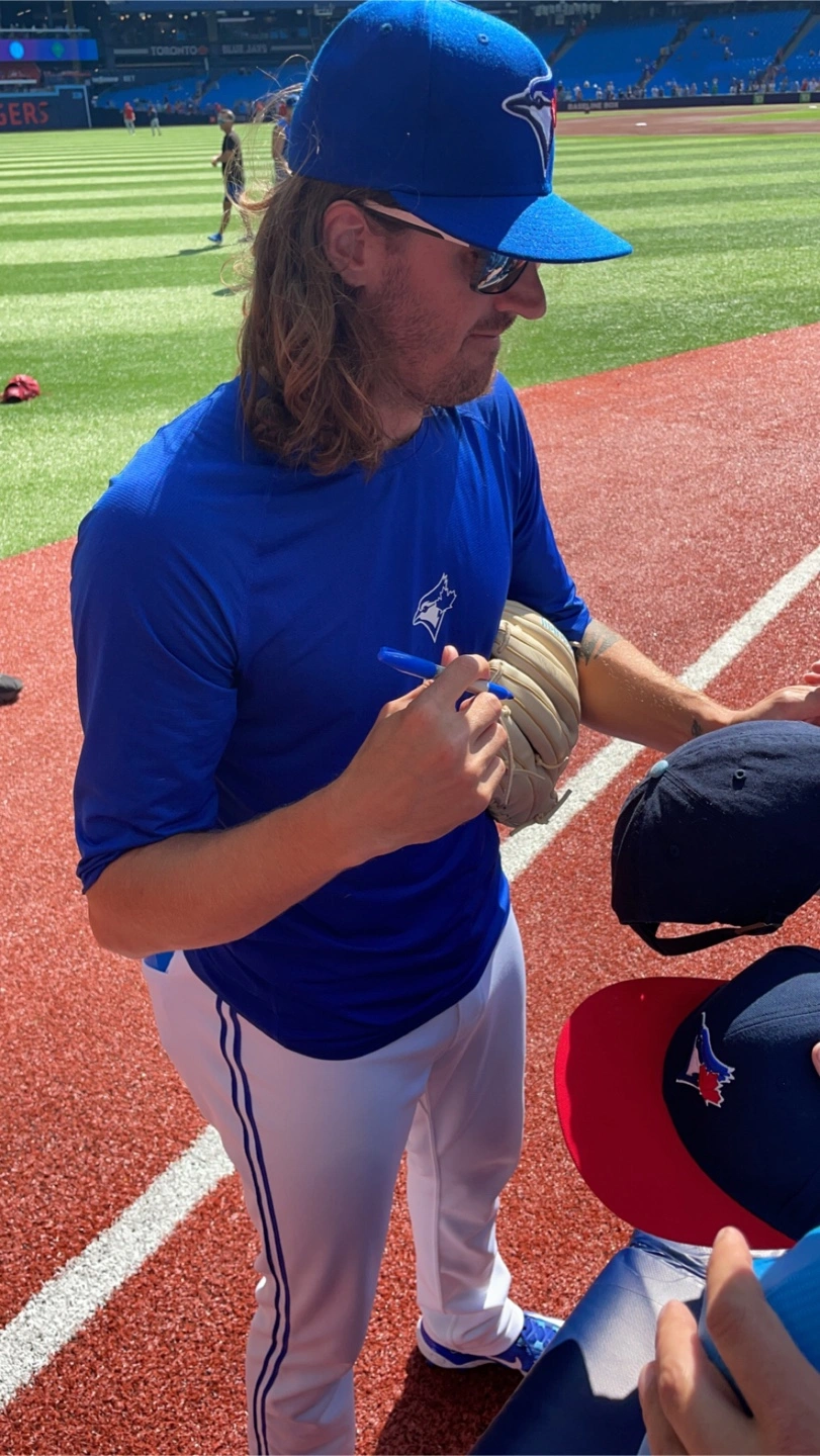 The baseball displays stitching, the official Major League Baseball logo, and a signature. This ball could be a great addition to a baseball fan's collection. obtained at the roger’s centre, as kevin gausman signed baseball. Toronto blue jays player