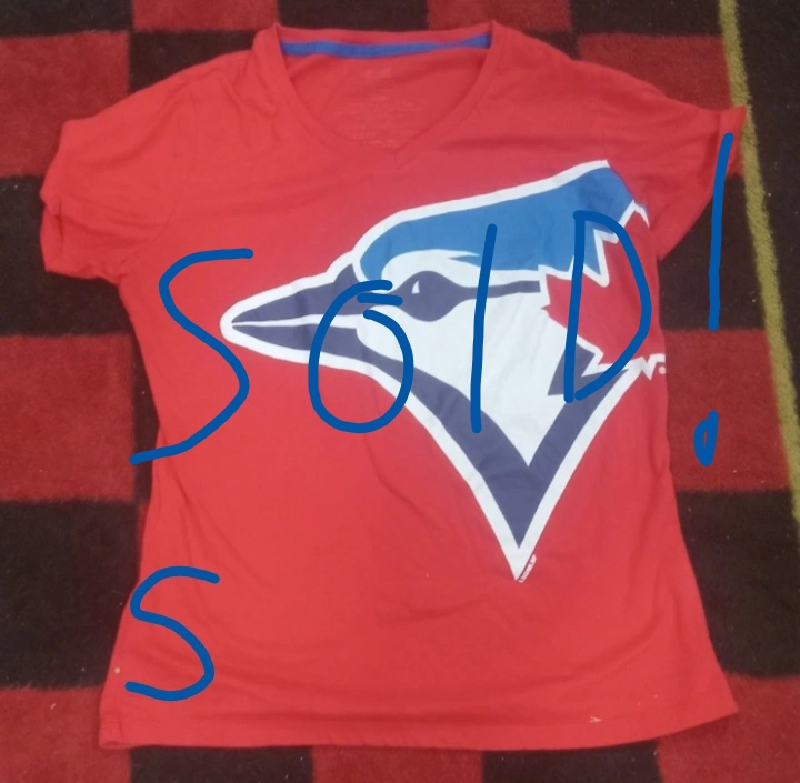 77I'm offering this set of Blue Jays apparel Includes a baseball cap, a red v-neck t-shirt, a blue v-neck t-shirt, a tank top and a grey t-shirt *Message which one you are interested in