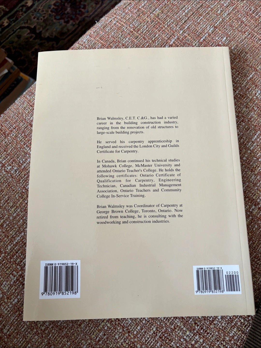 Construction Geometry, second condition. Bought it from Lee Valley back when I was a film carp and was told this was ‘THE study guide’ for the members test. Didn’t even open it. Don’t work in that industry anymore.