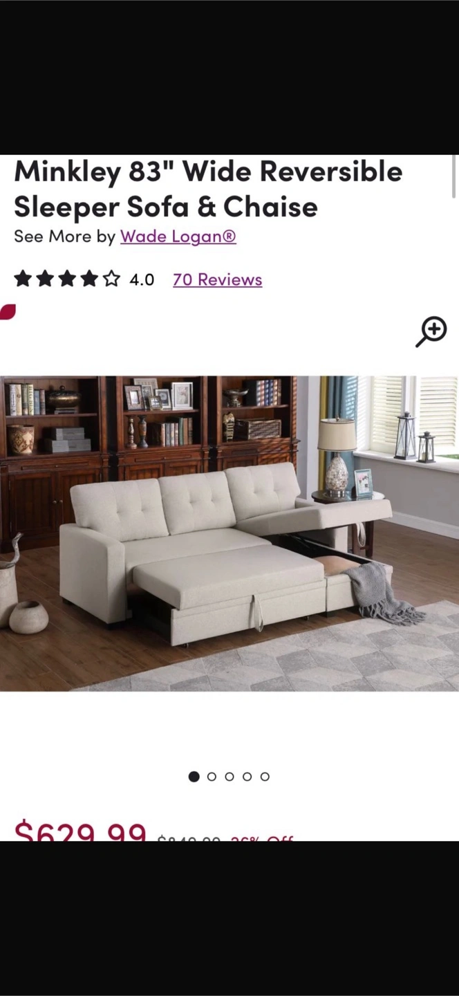 83" Wide Reversible Sleeper Sofa & Chaise