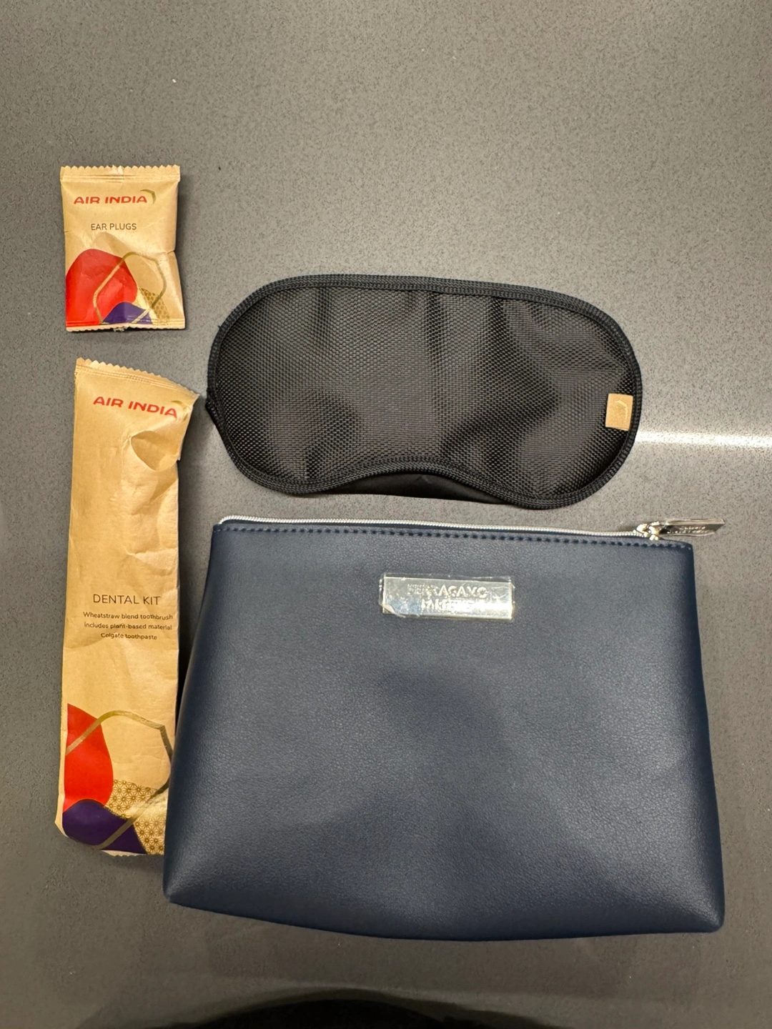 690Luxury meets travel with this Salvatore Ferragamo amenity kit, exclusively offered in Air India’s first class cabins. All items are brand new and unused. Includes: - Elegant navy Ferragamo zip pouch with silver branding - Black eye mask - Sealed dental kit (wheatstraw toothbrush + Colgate toothpaste) - Sealed earplugs