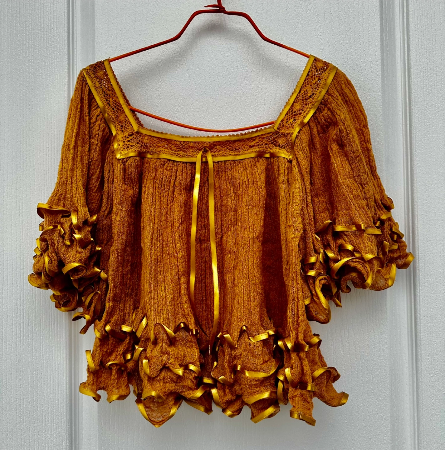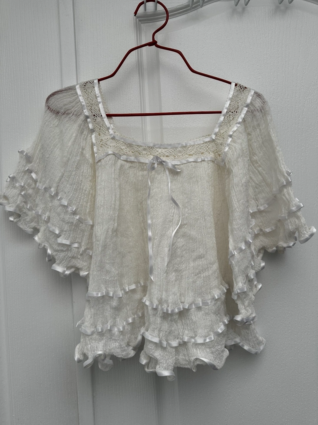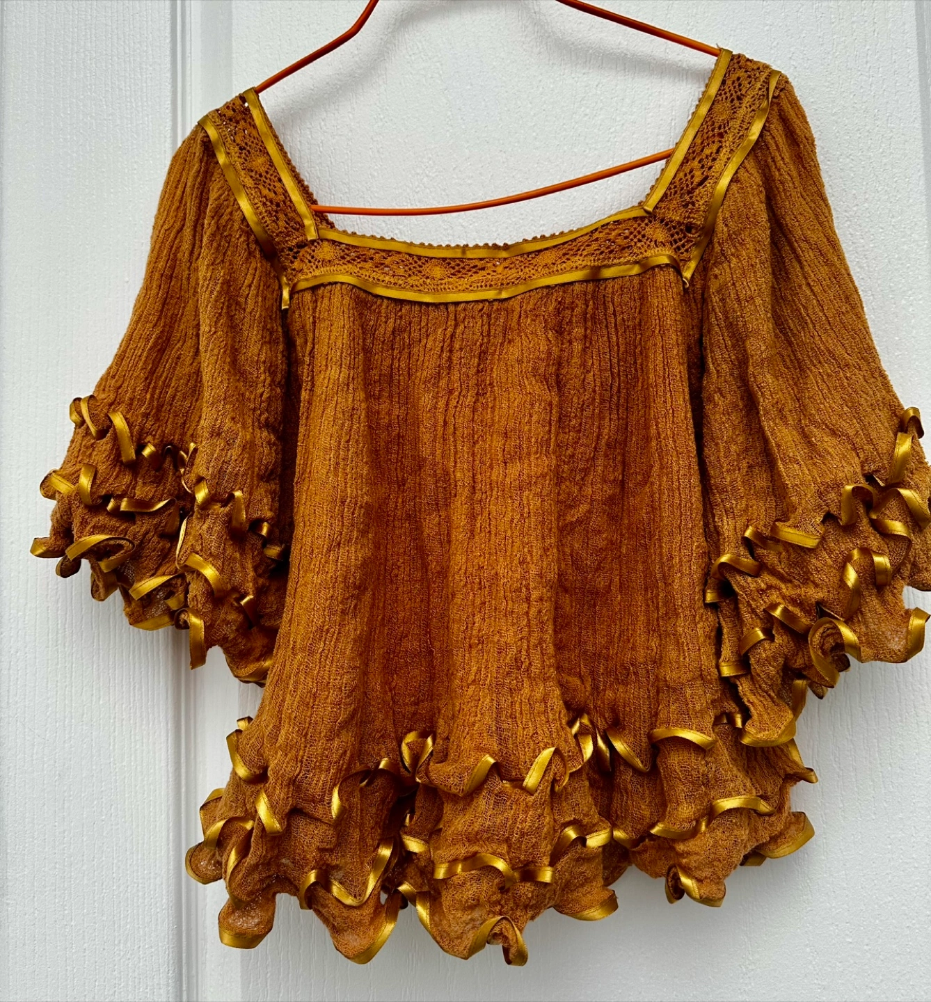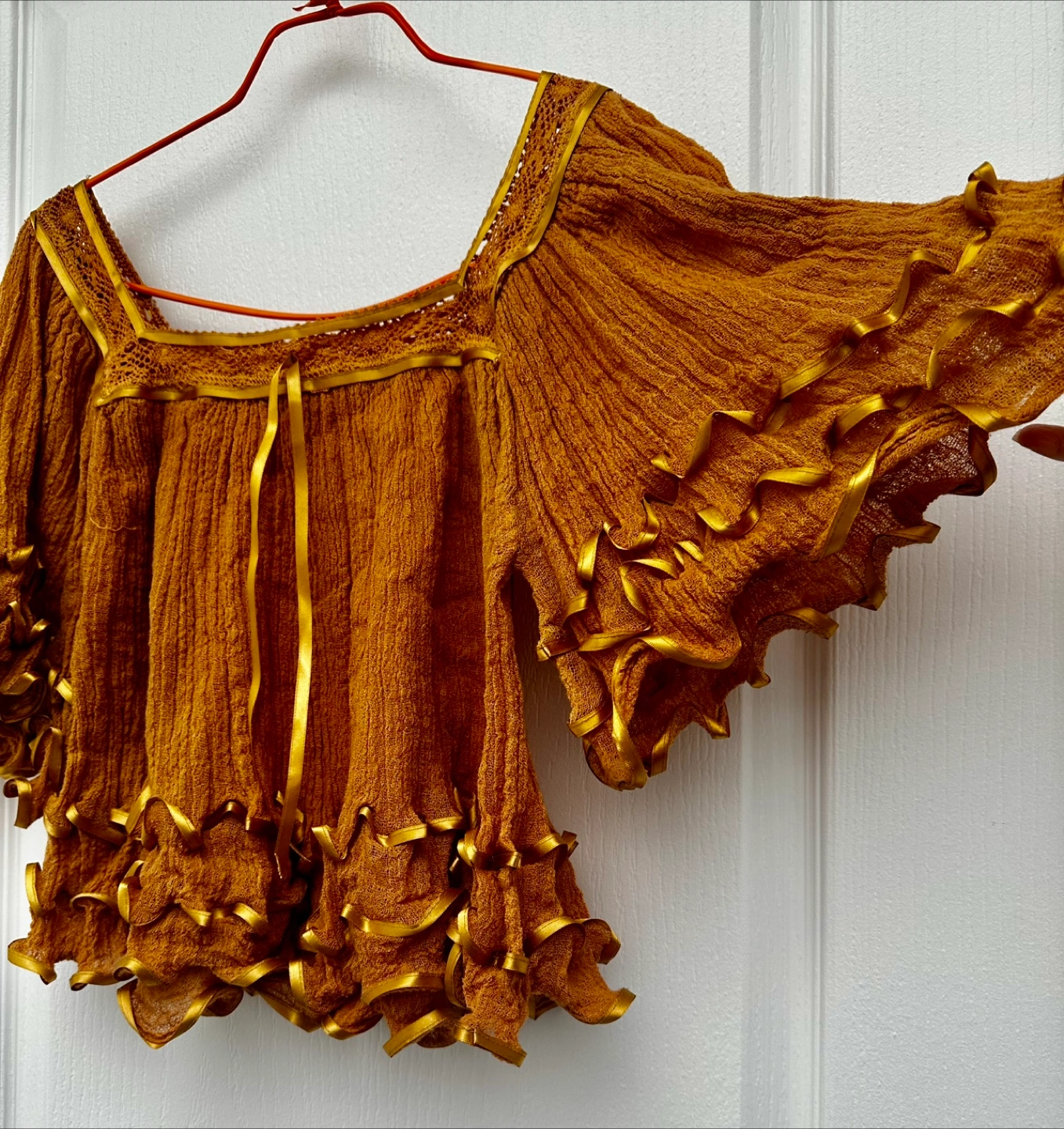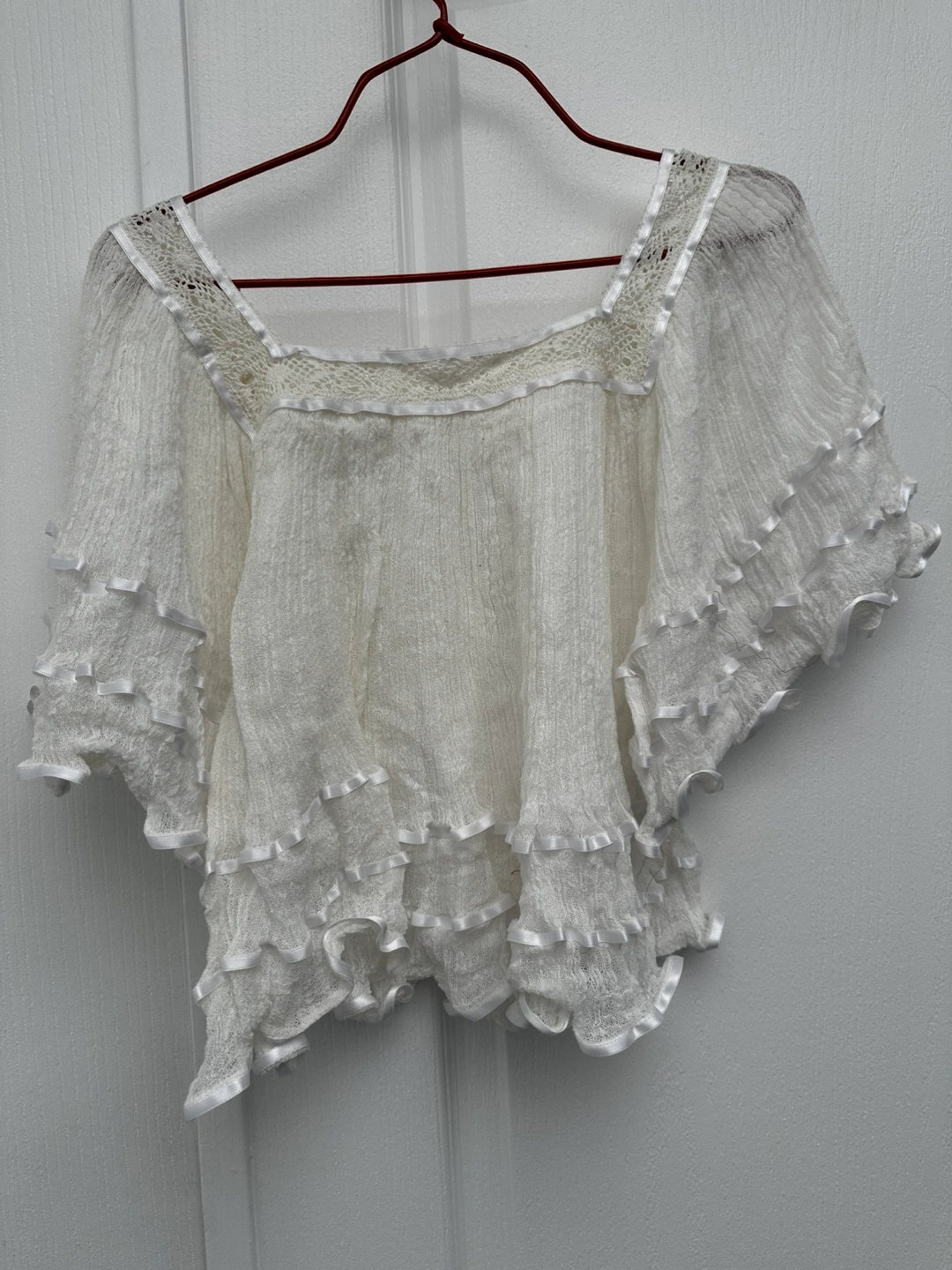 Ruffled Sleeve Blouses - white or light brown