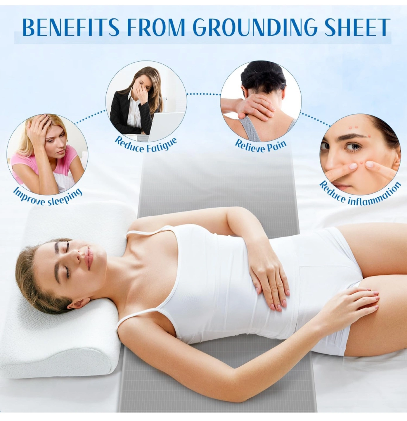 936A grounding sheet, along with a cable. Made of organic cotton and silver. It comes with a cable to connect to the ground. Get some rest and unwind after a long day of work.