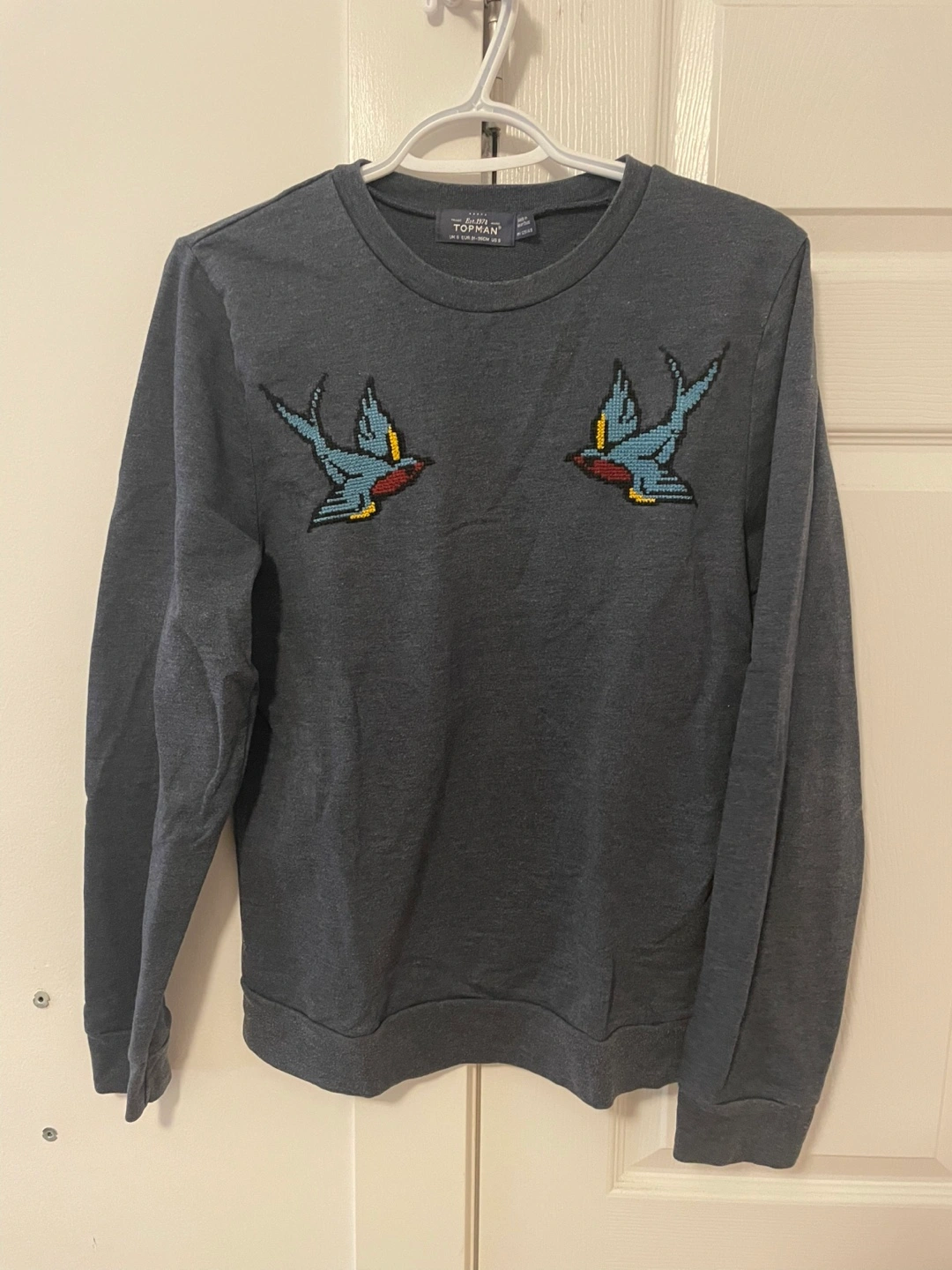Long sleeve shirt embellished with a colourful bird design. Is a men’s small but could be worn unisex
