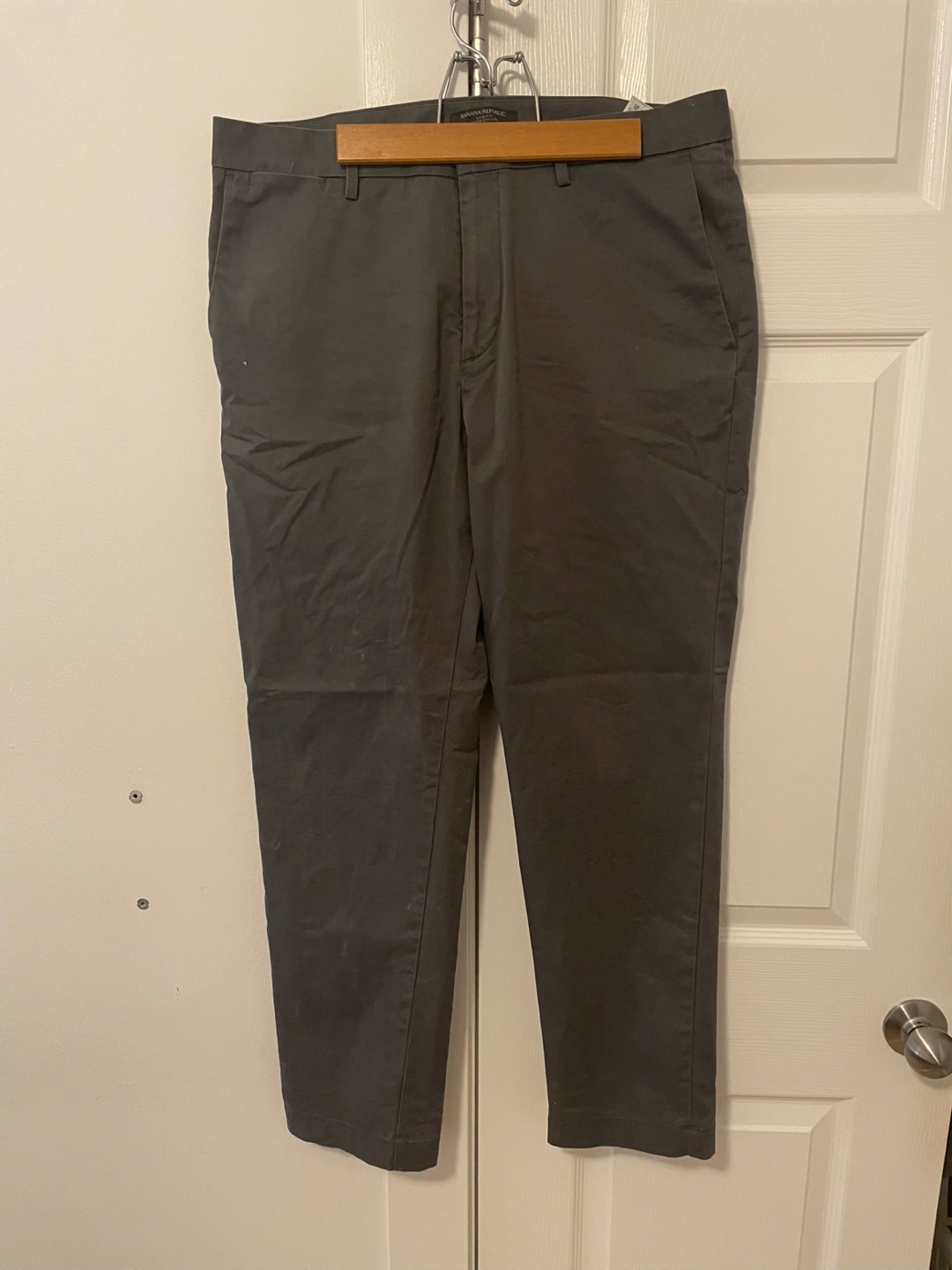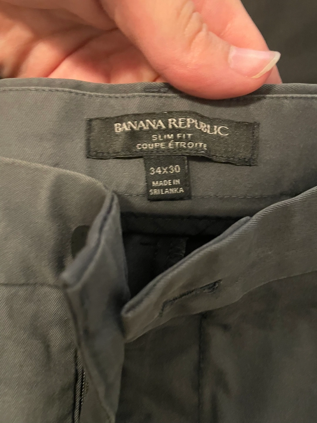 Men’s pants in a dark grey slim fit style from Banana Republic. 34” waist and 30” inseam Cash only please and pick up at keele subway station