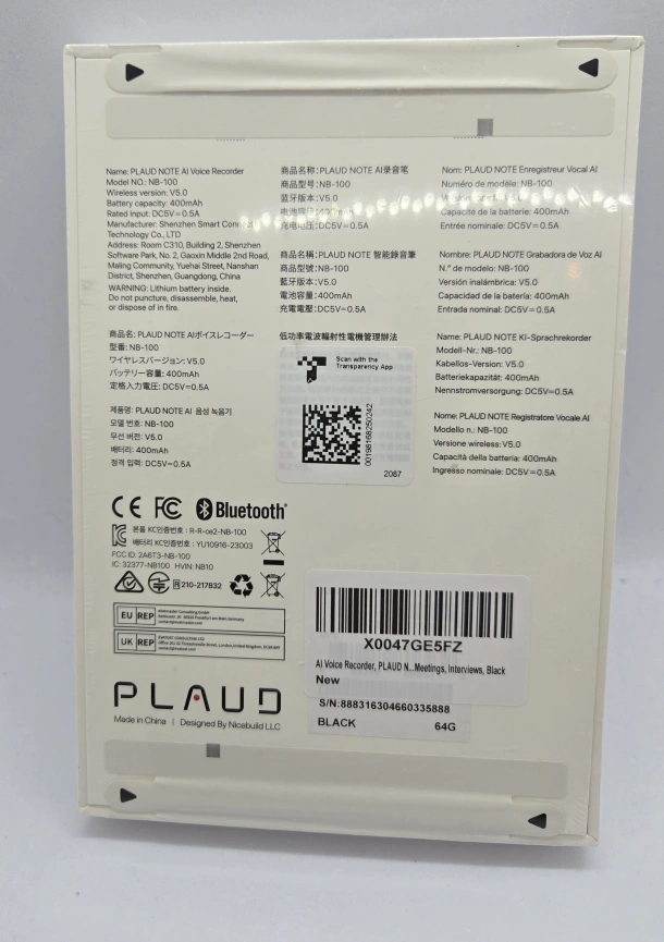 Brand new, sealed in box, PLAUD Note Voice Recorder with Case - Transcribe & Summarize with AI Technology. Features: * App Control & Transcribe * AI Summarization * Support 112 Languages * 64GB Memory * Audio Recorder for Lectures, Meetings, Calls etc. * Dual Mode Precision Recording Pickup at Hillcrest Mall.