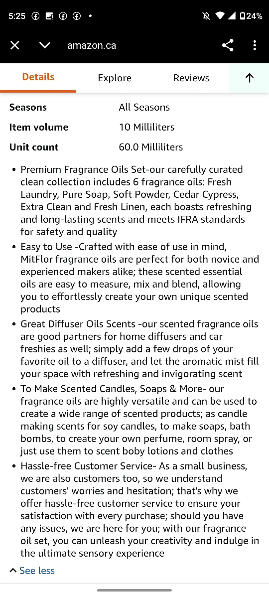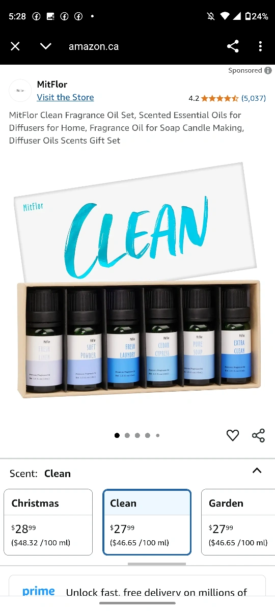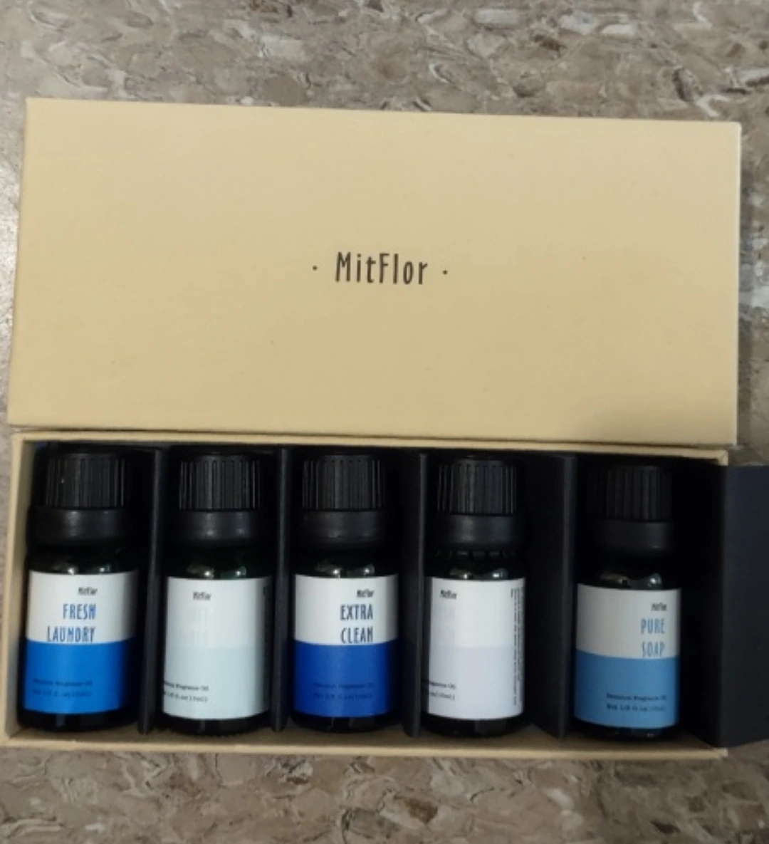 Set of essential oils in a box. Different scents available. A great way to make your home smell nice. $27.99+tax https://www.mitflor.com/