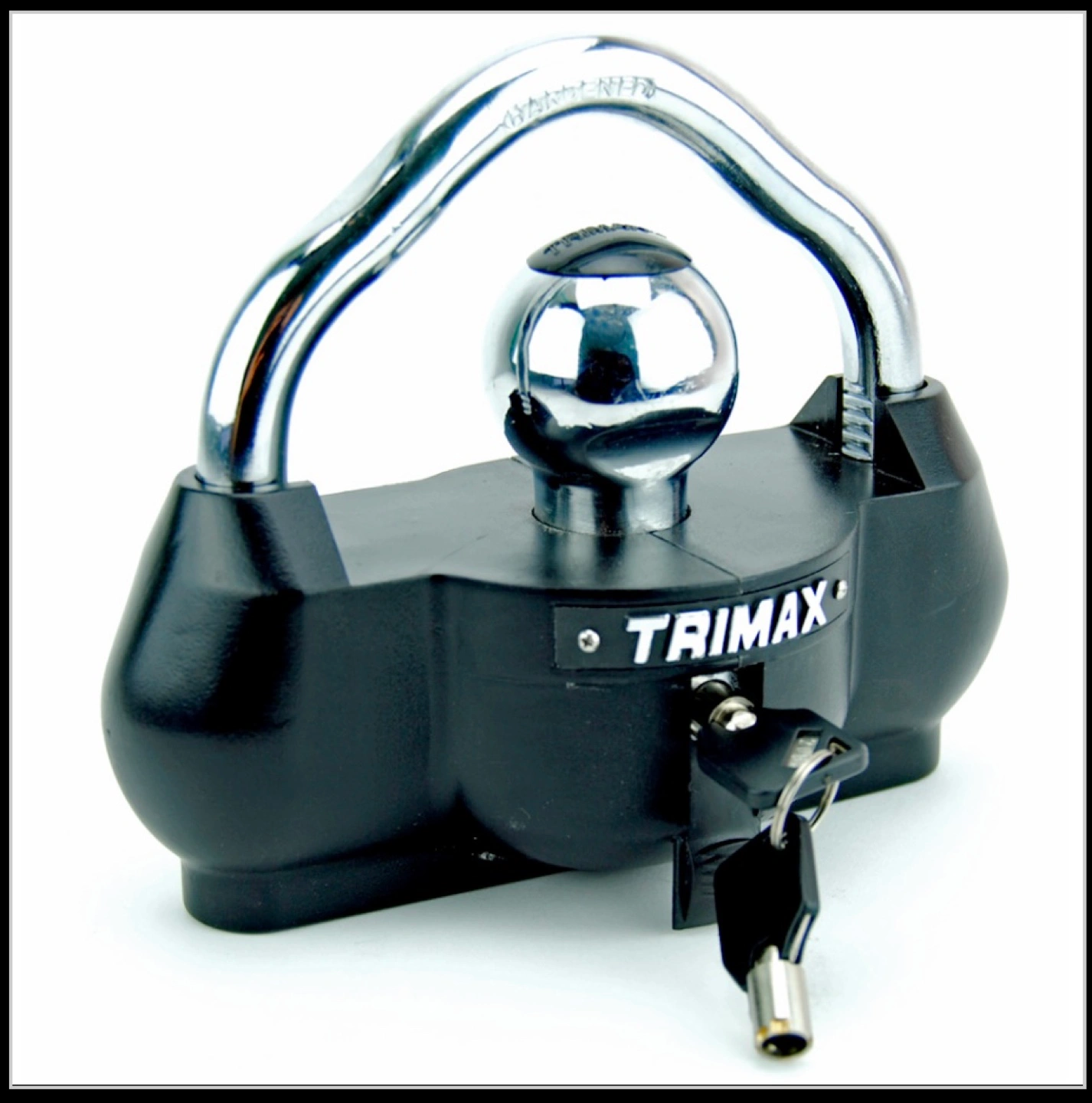 Here is a Trimax universal trailer coupler lock, ready to protect your trailer. The main body covered with ballistic grade nylon housing for corrosion resistance, perfect for a peaceful night's sleep.