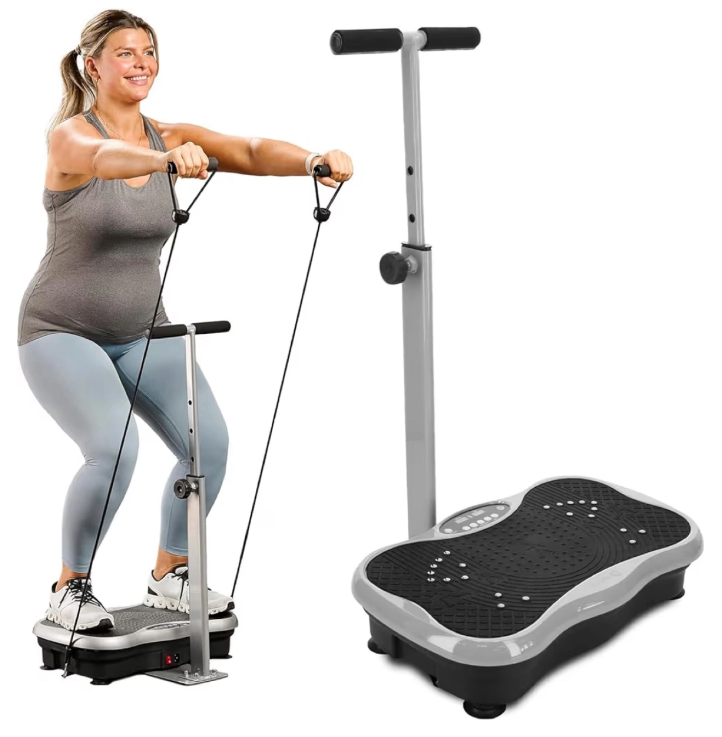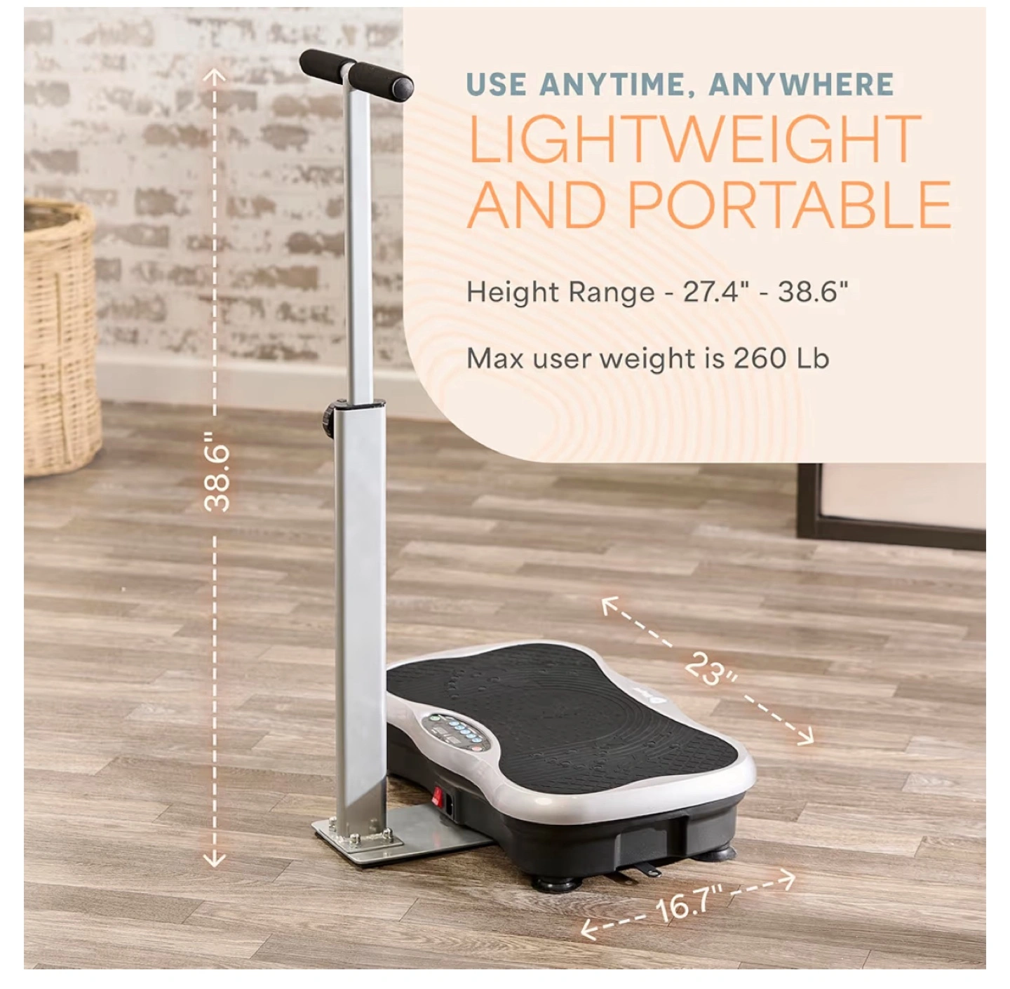 SAFELY BUILD ARM MUSCLE - The TrimLite Vibrating Plate Exercise Machine includes waist-high adjustable handlebars you can set between 27.4" & 38.6" high, & resistance bands to maximize your arm workouts