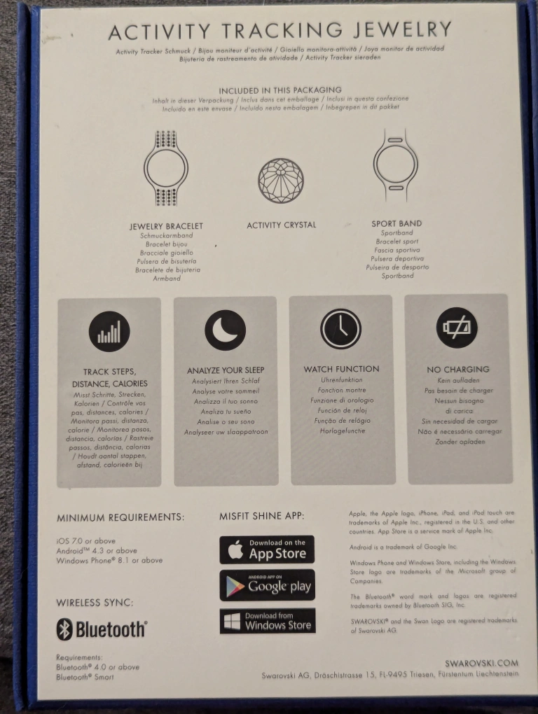 The activity tracker has since been discontinued and cannot be connected to a phone, but still works as a watch or a stunning crystal accent! Easily removed if desired.