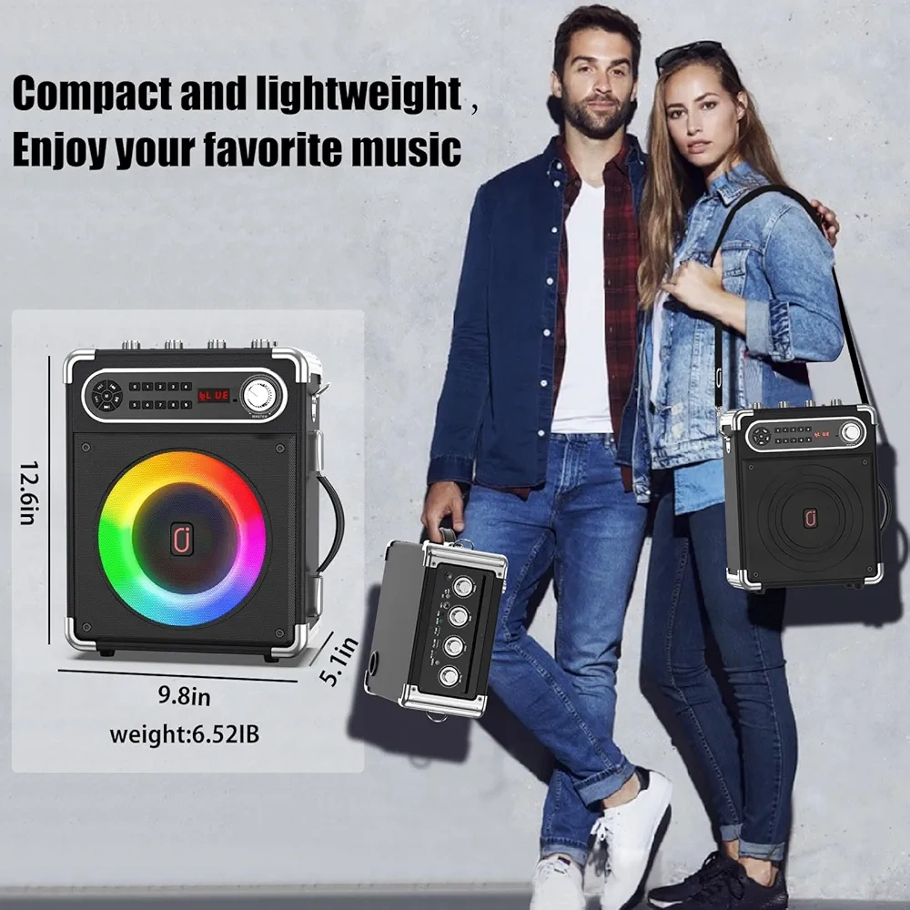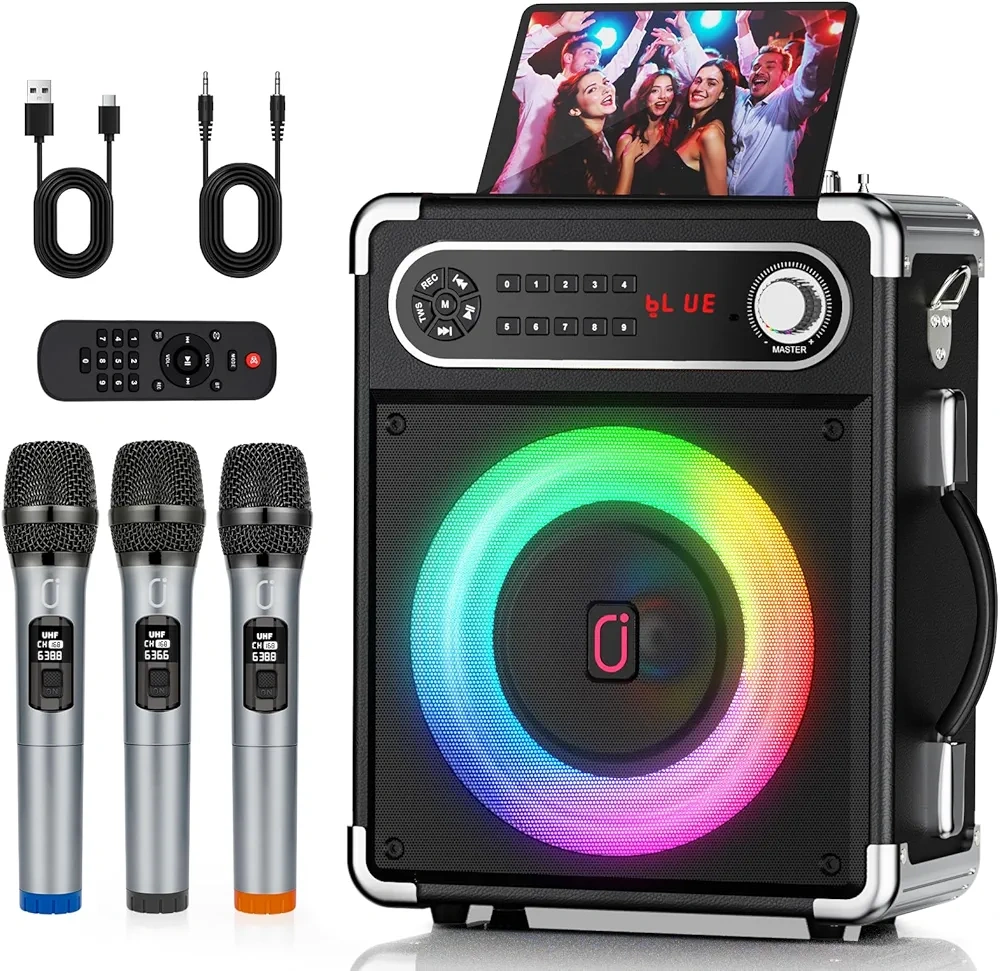 Karaoke Machine with 2 Wireless Microphones,Portable Bluetooth 5.1 Speaker for Adults Kids,Bass/Treble Adjustment,PA System with Remote Control, Lights, Supports TF Card/USB, AUX in,TWS,FM,REC Party