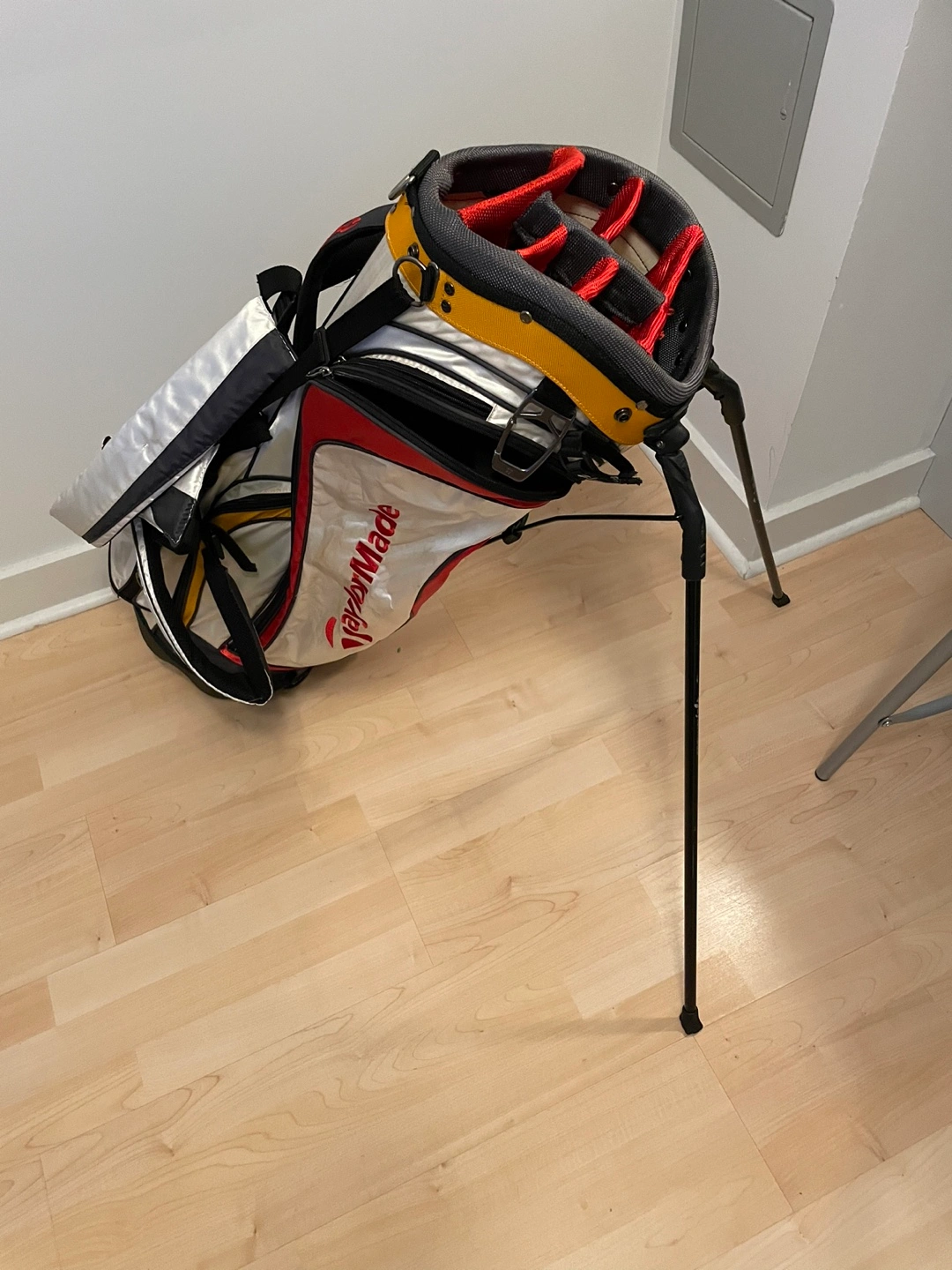 Golf bag in good condition. Featuring several pockets and compartments. Perfect for carrying all your golf essentials and enjoying a relaxing day on the course.