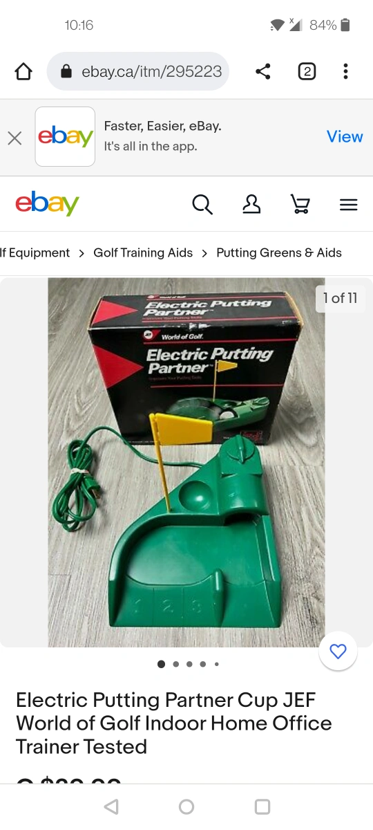 A golf training tool. Comes with a green putting cup. It has a place to put the golf balls. Perfect for practicing your putting skills.