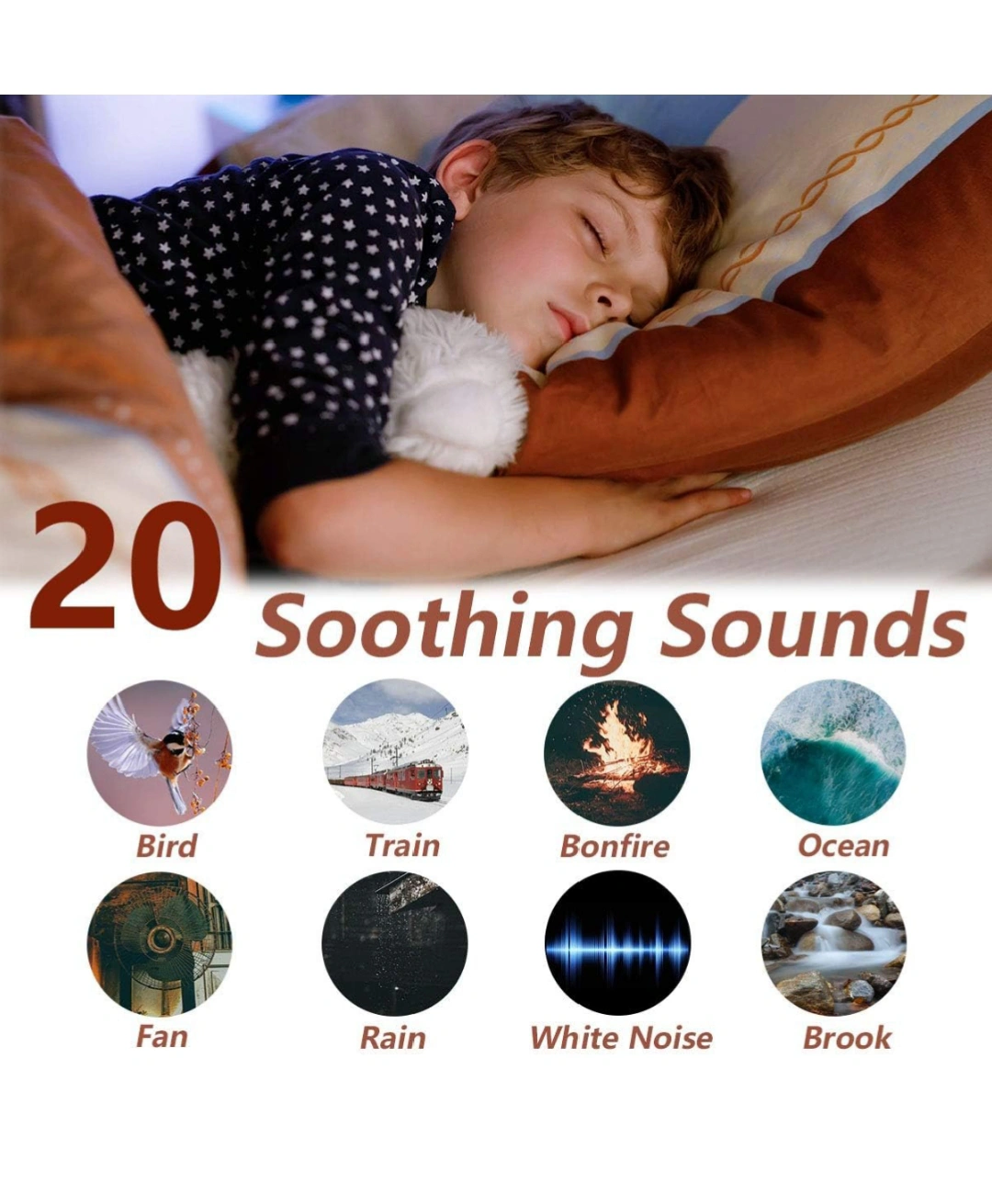 Magicteam Sleep Sound White Noise Machine with 20 Natural Soothing Sounds and Memory Function 32 Levels of Volume Powered by AC or USB and Sleep Timer Sound Therapy for Baby Kids Adults (White).