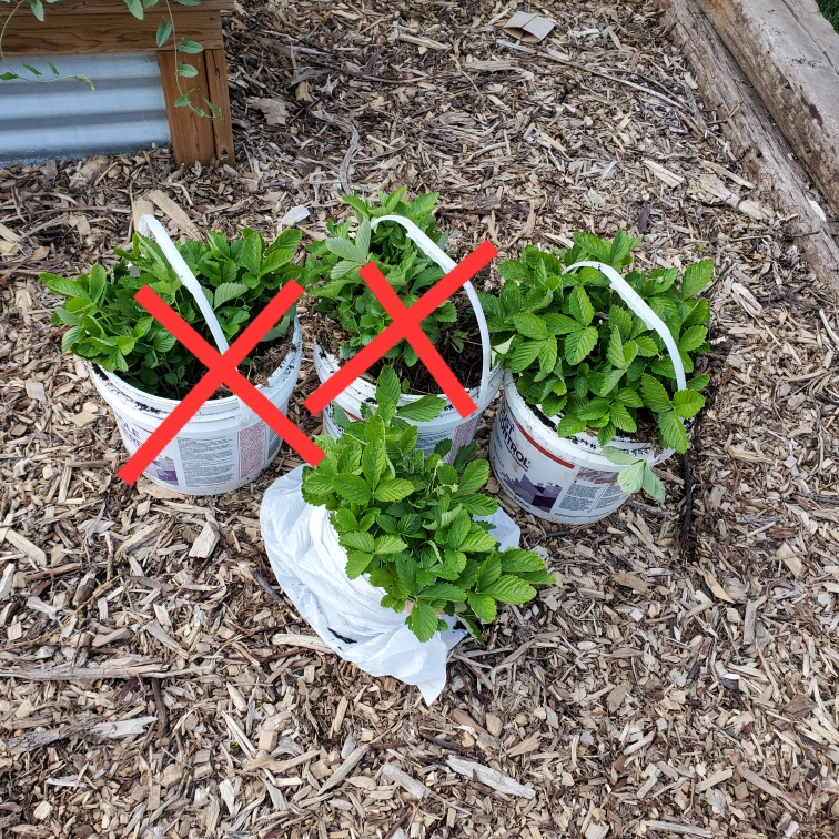 $20 each bucket/bag. Several individual strawberry plants in each clump can be further divided. 2 available
