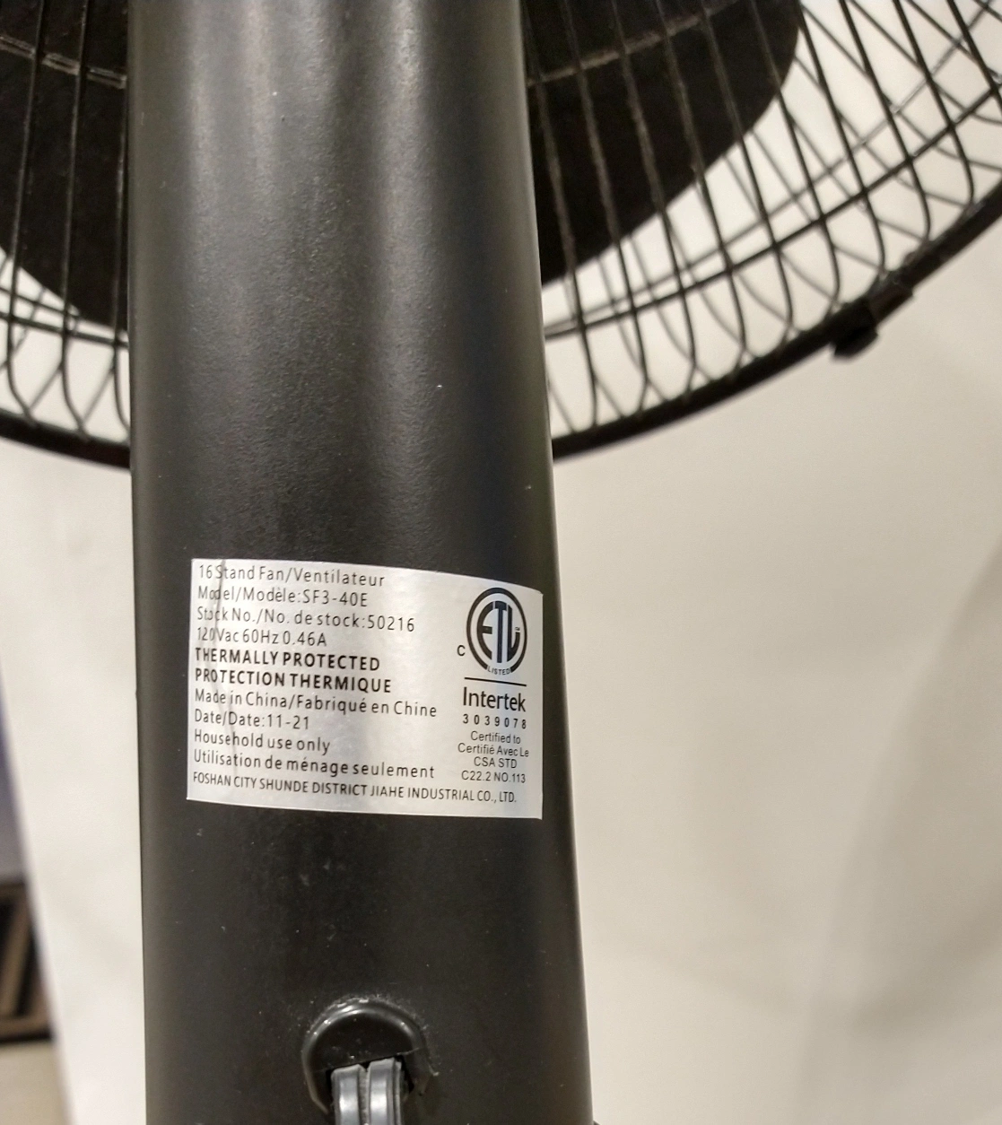 Mainstays 16" stand fan