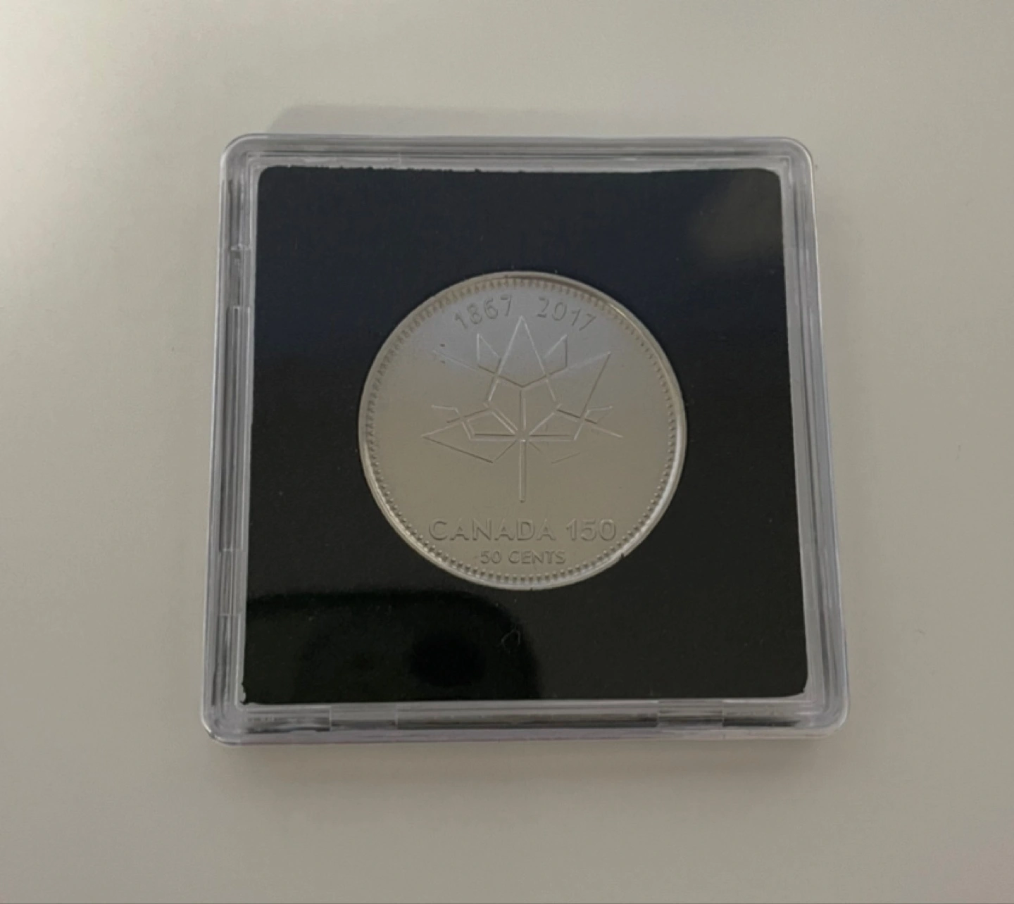 236Canada 150th Birthday 50 cent piece in plastic coin holder. Appears to be in great condition.