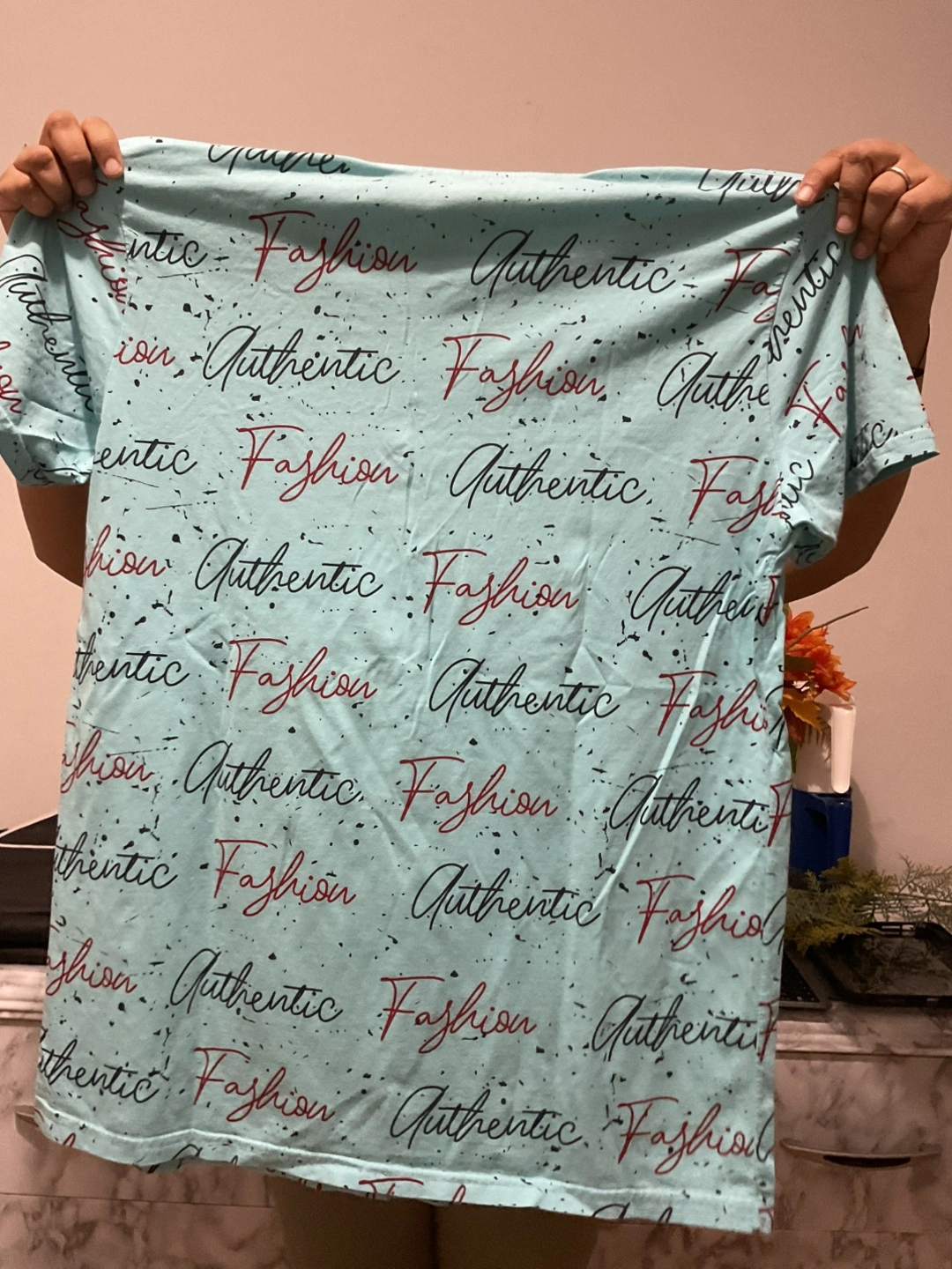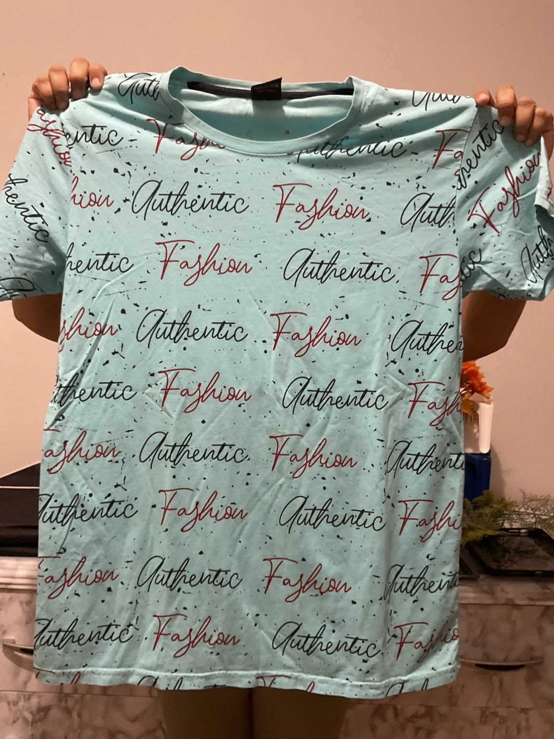 1000+A turquoise t-shirt with a unique design. The print consists of the words “Fashion” and “Authentic”. Perfect for a casual day out where you can feel relaxed and stylish.