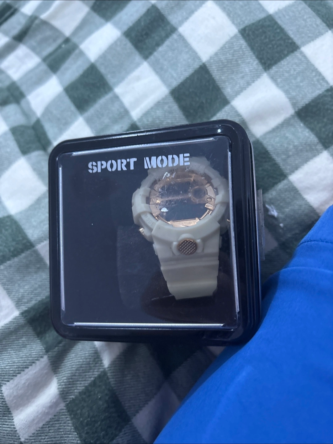 41A new watch still in its original packaging. The watch has a white band. It is perfect for the everyday wearer to keep track of their time and movement during their daily life.