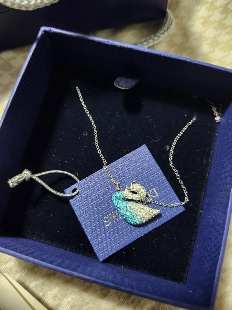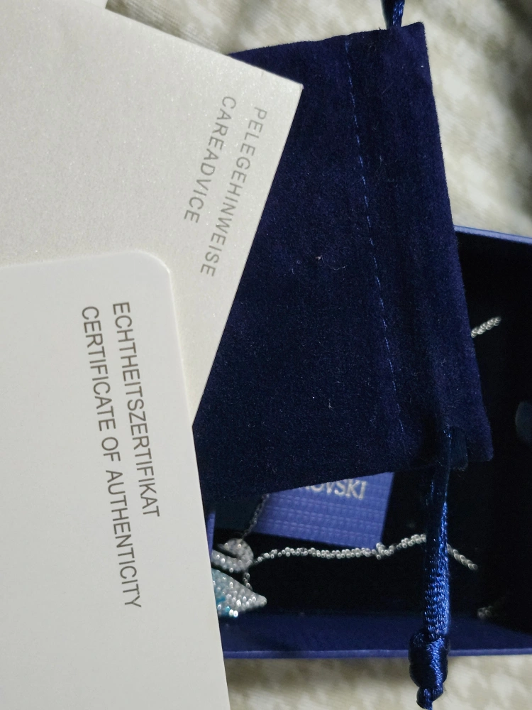 17A stunning necklace in a navy blue box. Comes with a care advice card and a certificate of authenticity. A fantastic piece for adding a touch of sparkle to any outfit.