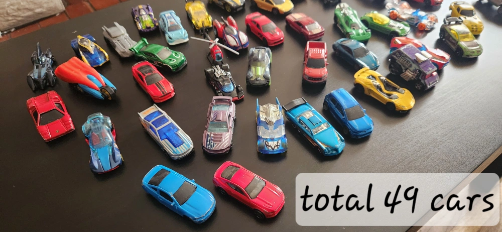 I'm selling a large lot of toy cars. There's a variety of colours, and styles. .