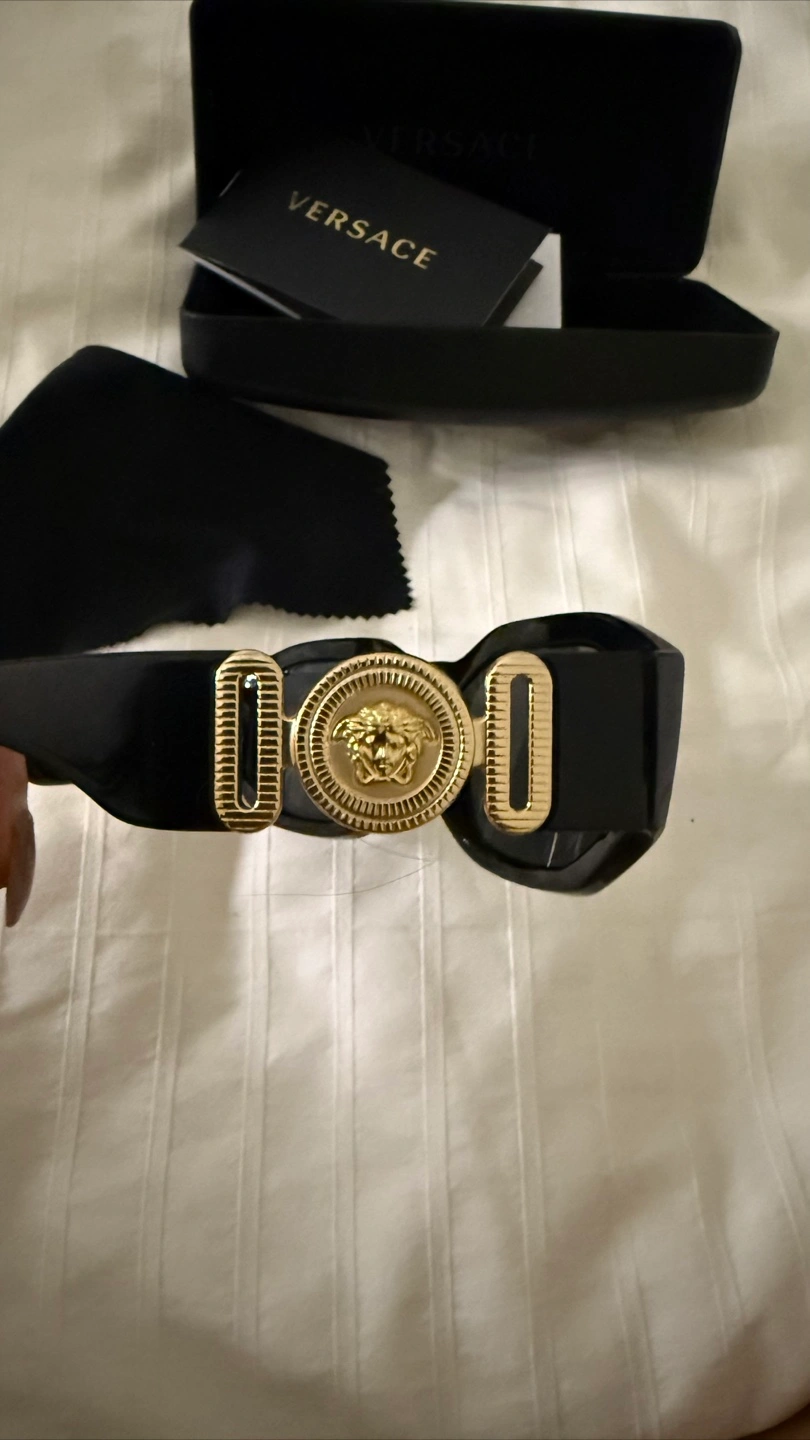 These are gorgeous Versace sunglasses with a classy and timeless design. Included are a case, cleaning cloth, and paperwork. You can use these sunglasses to relax, taking in the bright summer sunshine.
