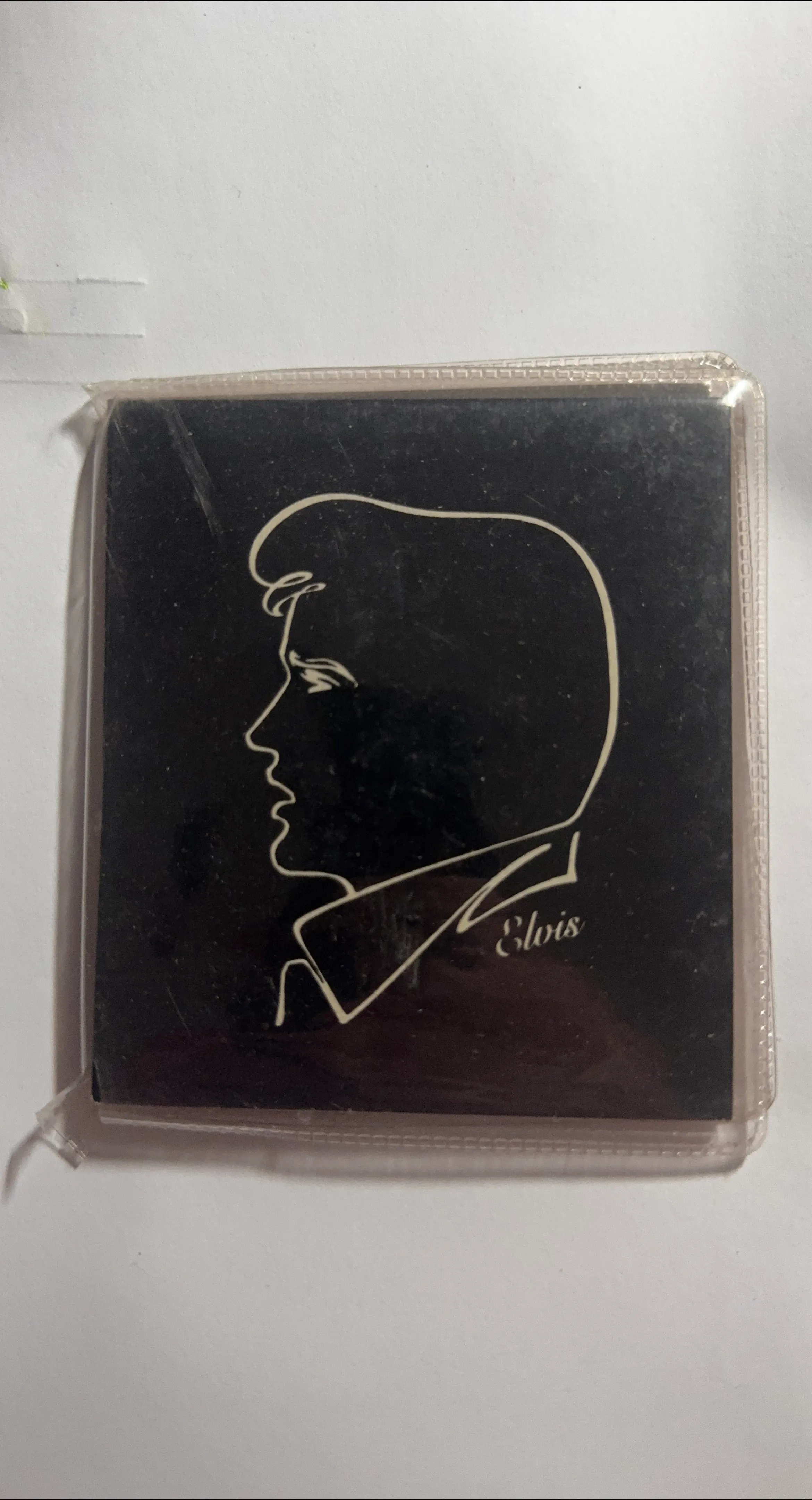 Coaster features a classic Elvis profile. Black square design. It would be a lovely addition to any home bar setup.