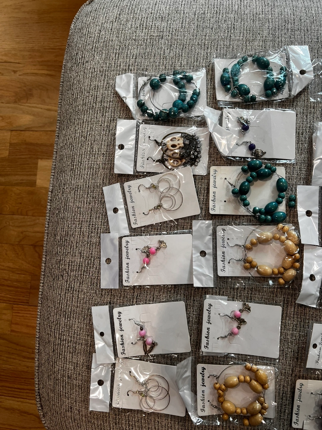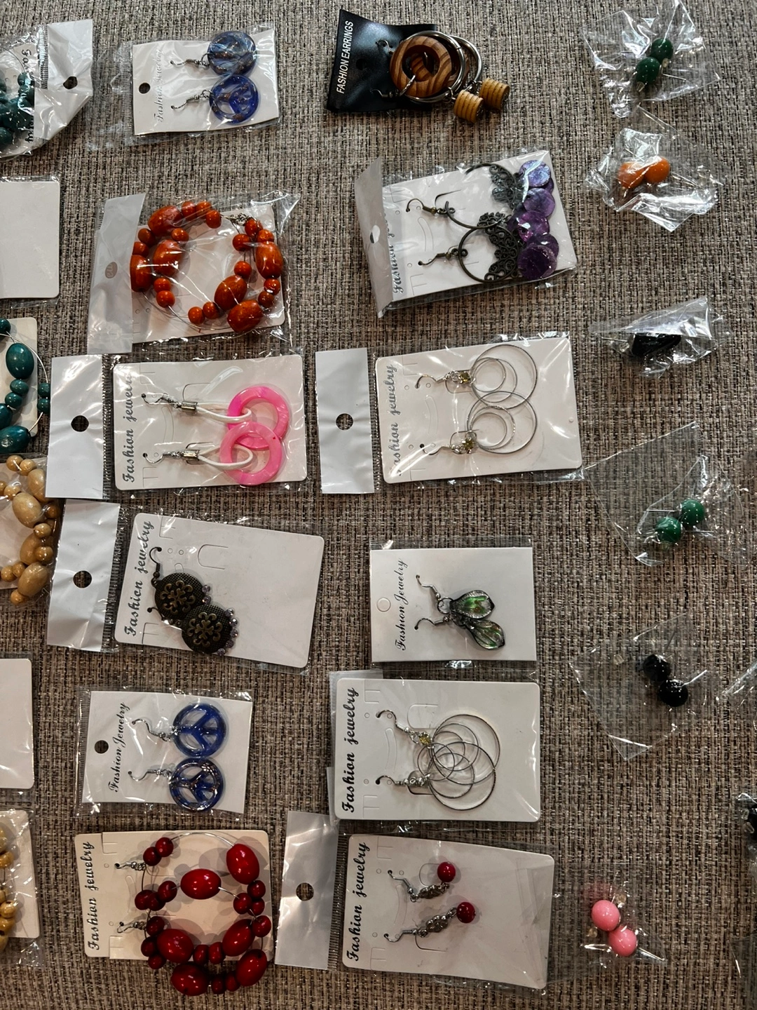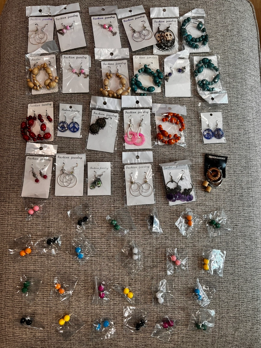 Here is a large lot of jewelry. There are earrings in many different styles. 48 pcs