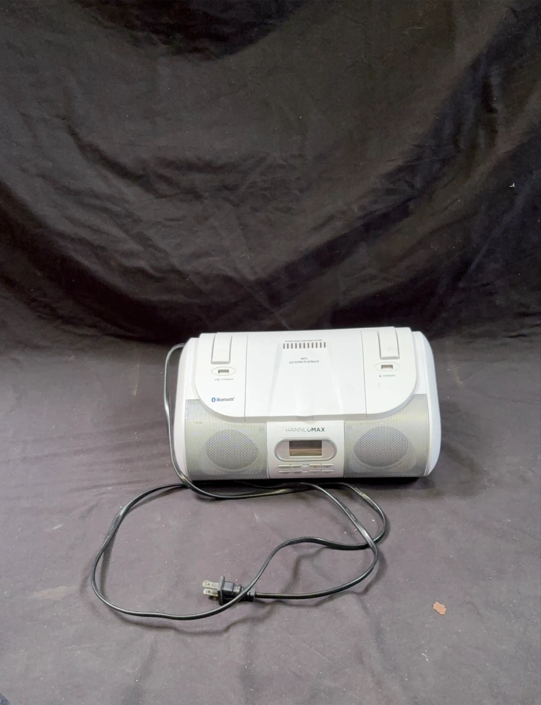 Good condition HANNLOMAX Stereo Radio CD Player A stereo radio CD player. White and silver colour. Featuring Bluetooth and a charging port. Perfect for listening to your favourite tunes while relaxing. $5 Pick up Victoria Park and O’Connor area