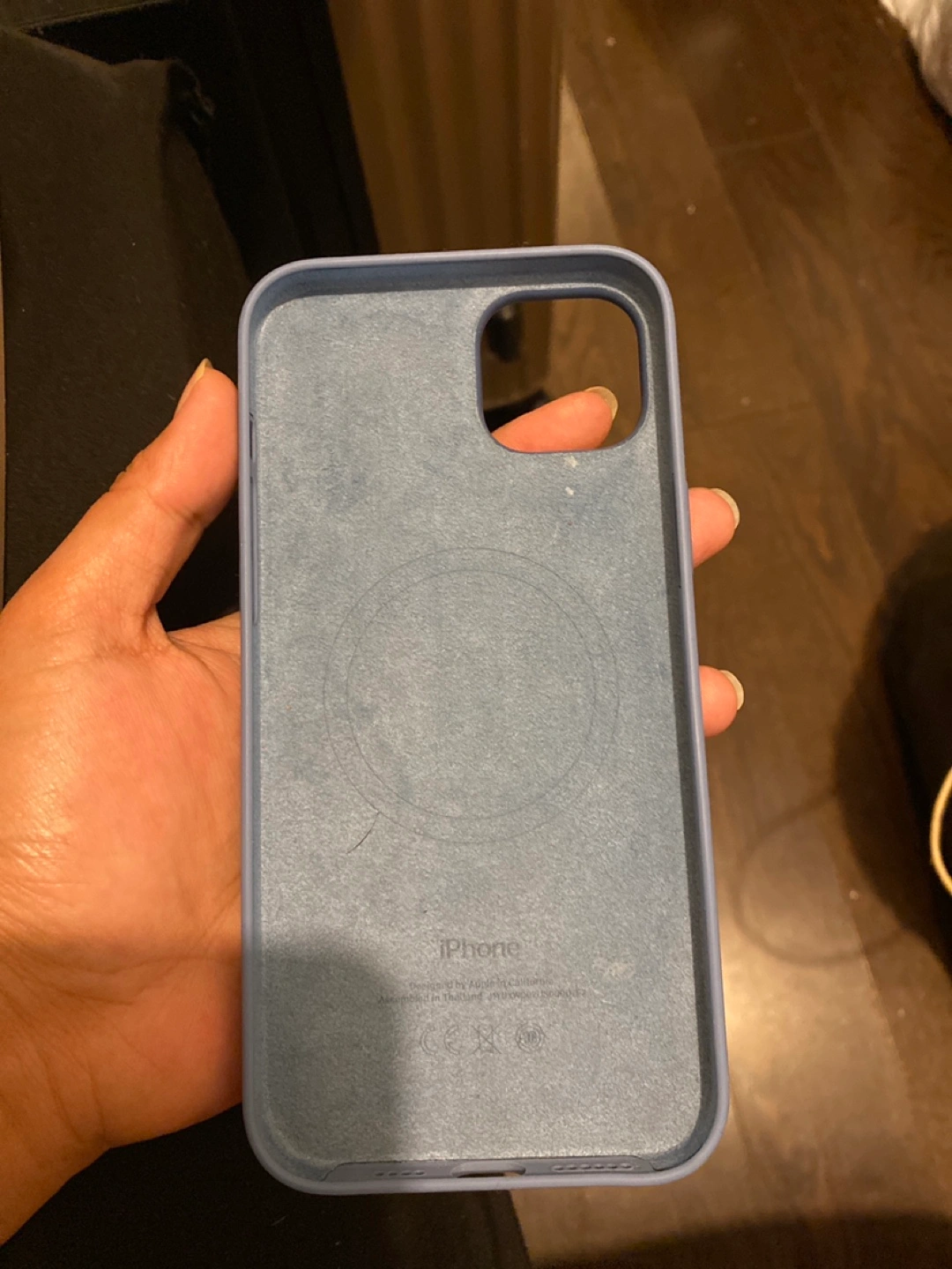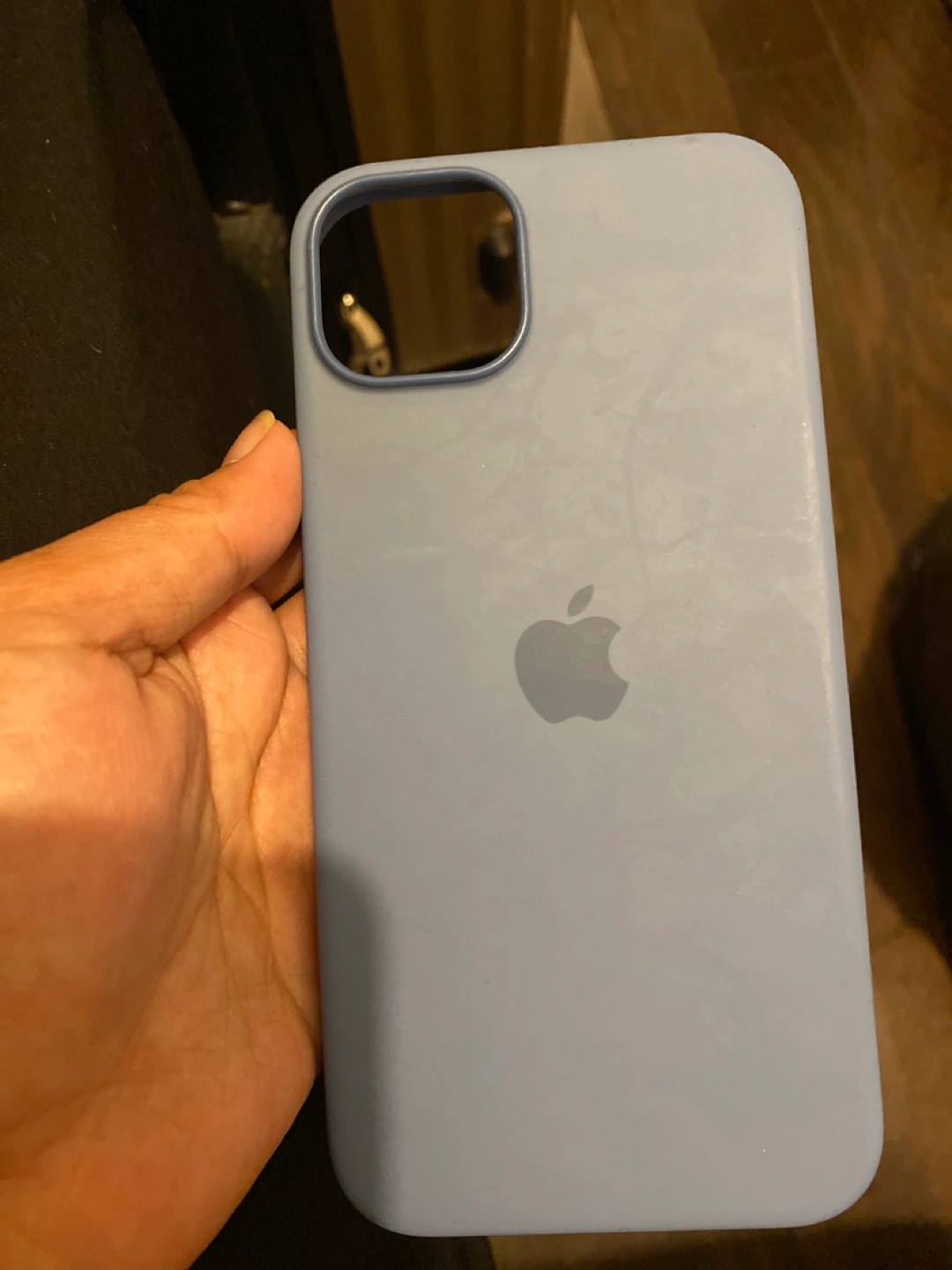 A sturdy phone case in a nice blue. It seems to be soft to the touch. It has a spot for the phone's camera. Having a phone case can bring you a sense of calm knowing your phone is safe.