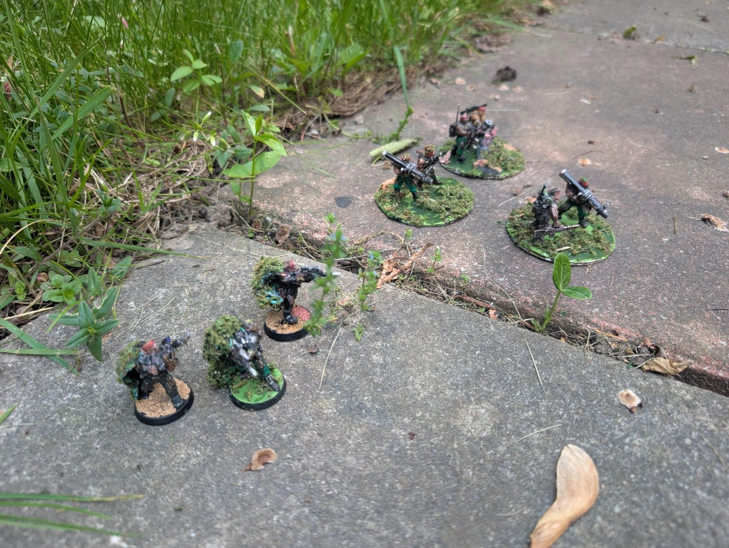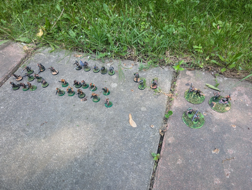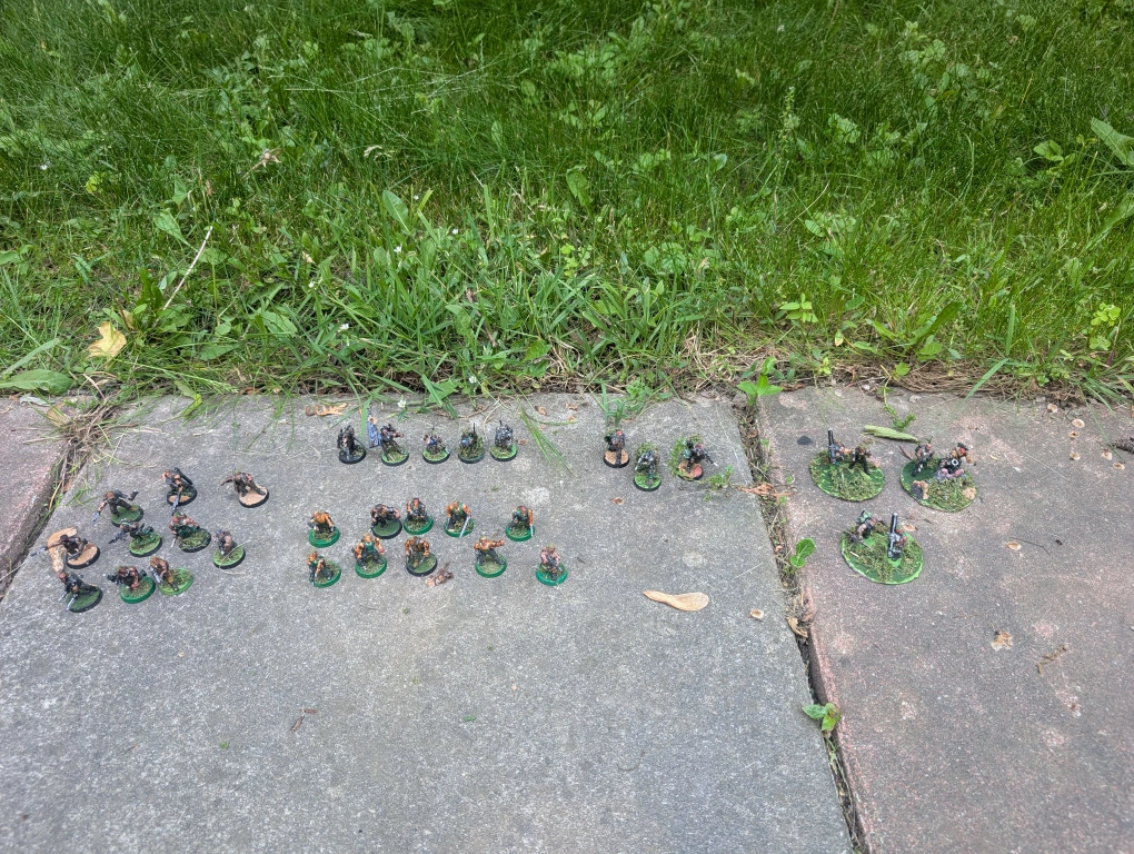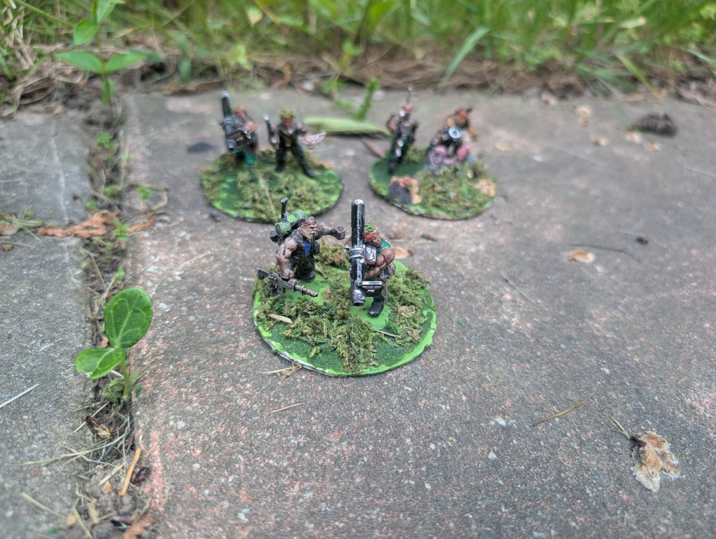Get ready to lead the fierce Catachan Jungle Fighters with 'the fighting 647' into battle with this nicely painted Warhammer 40K army. This army includes a variety of miniatures from the Catachan regiment; which includes, a Command Squad, 20 Catachan Devils, a team of Veteran Commandos and a Heavy Weapons Mortar and rocket team. Perfect for fans of intense jungle warfare scenarios. Add these detailed miniatures to your collection and bring the rugged warriors of Catachan to life on the tabletop battlefield. Command your troops with precision and style as you immerse yourself in the rich lore and strategic gameplay of Warhammer 40K. Whether you're a seasoned player or just starting out, this Catachan Jungle Fighters army is a must-have addition to your Warhammer collection. Engage in epic battles and dominate your opponents with this unique and powerful army.