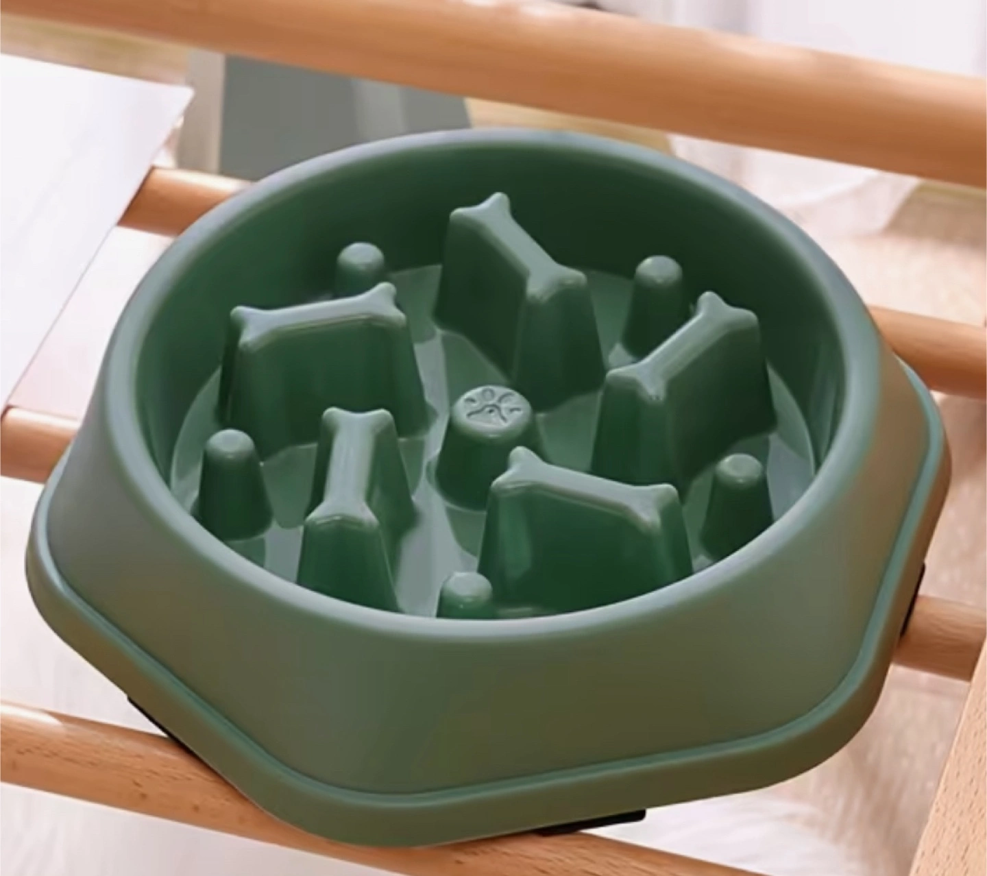 BNIB- Slow feeder bowl in green. Shape with bone and cone-shaped bumps. Designed for dogs to eat at a slower pace. Enjoy watching your dog eat at a calmer, slower pace.