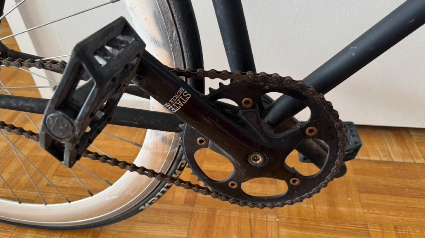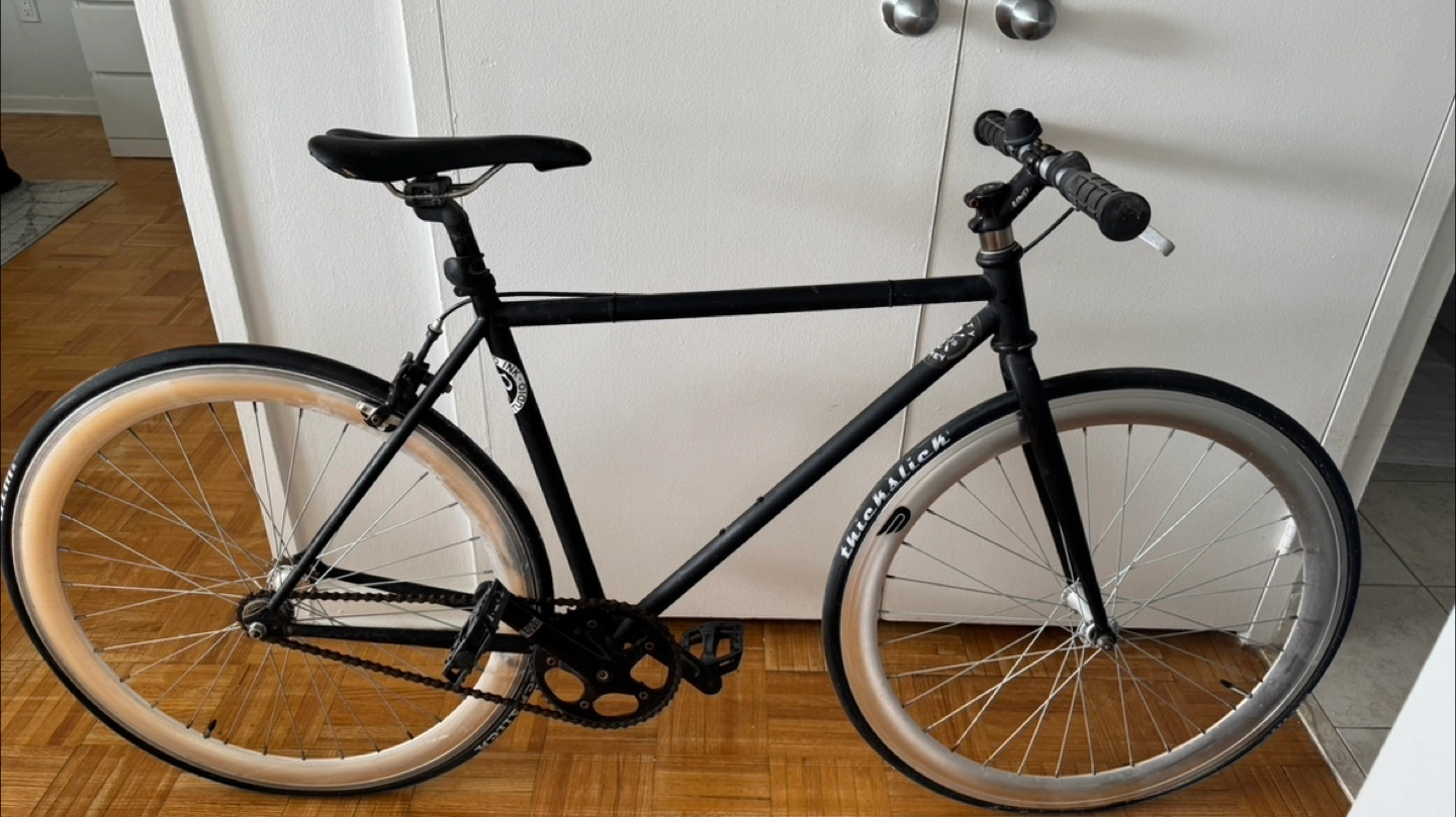 Selling my used Pure Fix . fixed gear/single speed bike, perfect for urban commuting and stylish rides around town. This fixed gear bike has a sleek matte black finish and rides smoothly, making it a reliable choice for daily commutes. Please note that the bike has some wear and tear, reflecting its used condition, including some rust on the chain and gears as shown in the photos.