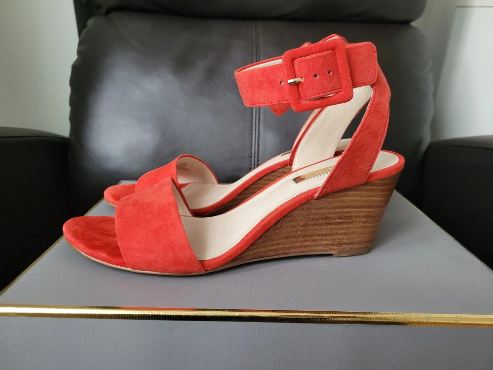281Suede wedge sandals. Ankle strap closure. Wooden wedge heel. Excellent condition. Size 7 1/2 Medium. Worn a few times
