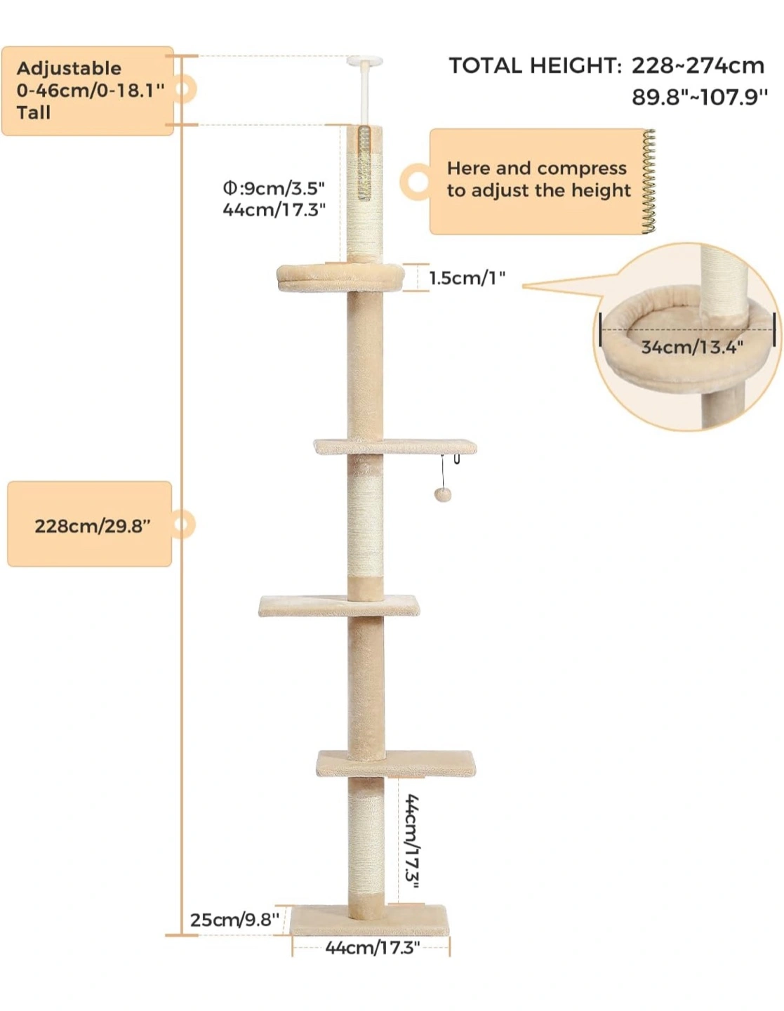 Floor to ceiling cat tree