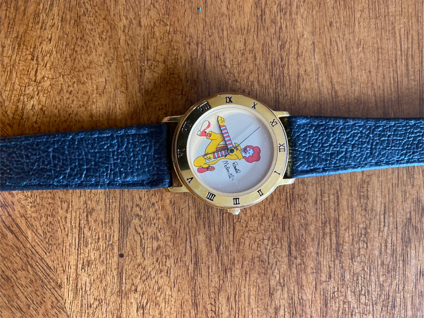 31Attention watch collectors! Vintage 1990's Ronald McDonald Japanese Movement Quartz, water resistance Watch with original black leather band. The watch is in its original box, ready to bring you comfort when you're feeling a little lost in the world. Never used. Only $30. Pickup in Brampton