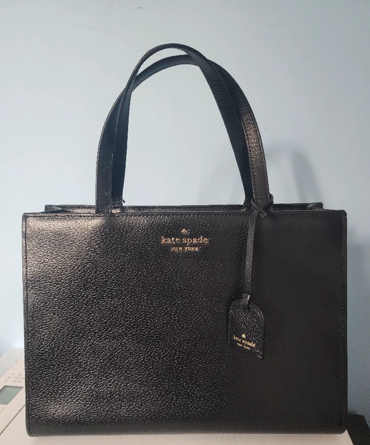 86Black, textured handbag. Featuring two handles. Includes a brand tag. A gorgeous bag that will help you feel secure while carrying all your things.