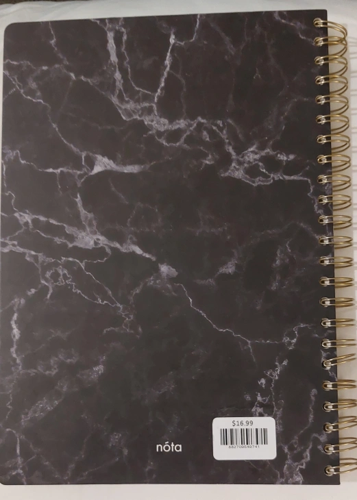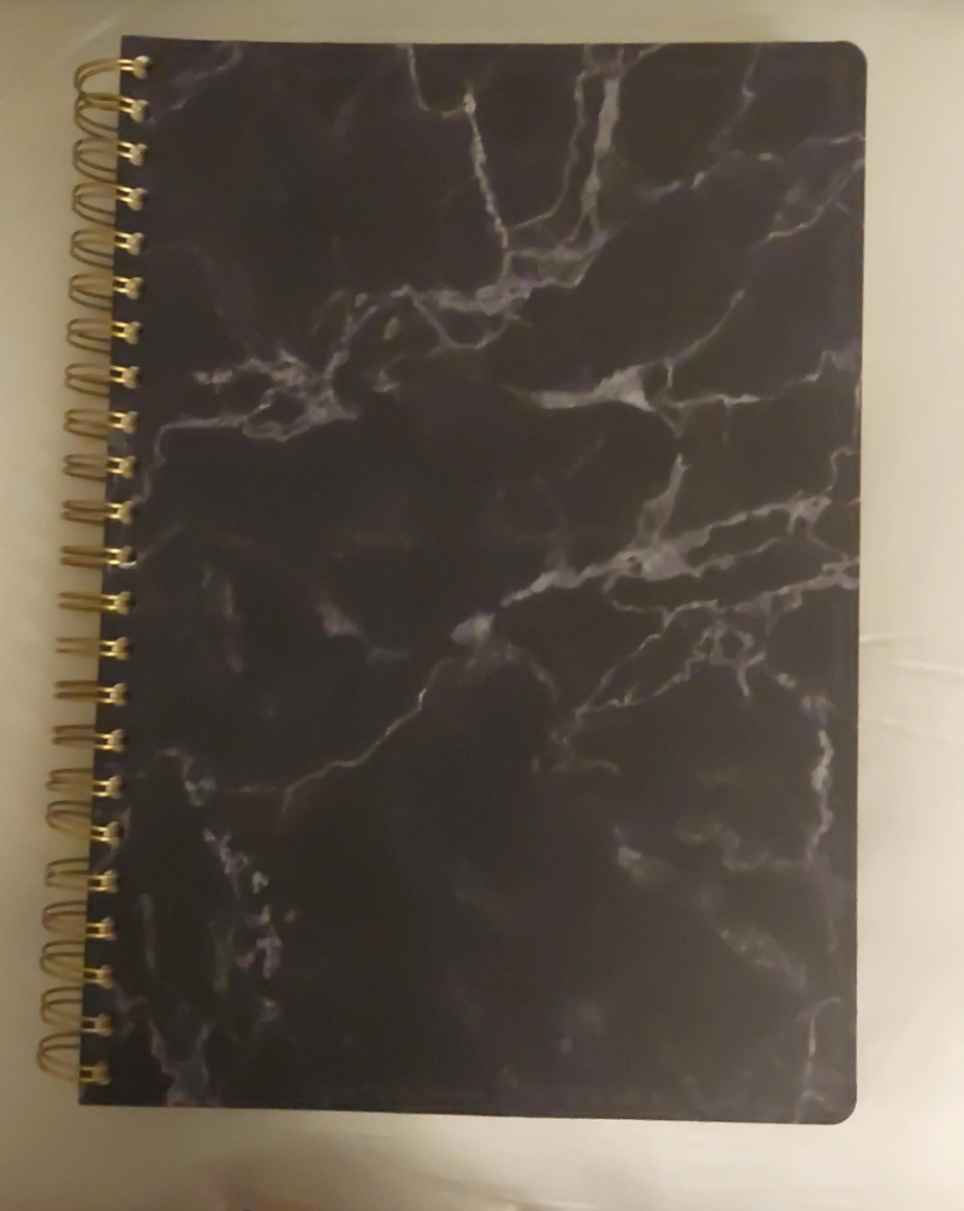 A beautiful notebook, featuring a marble design. The spiral binding is gold in colour. Such a nice way to take some time for yourself and reflect.
