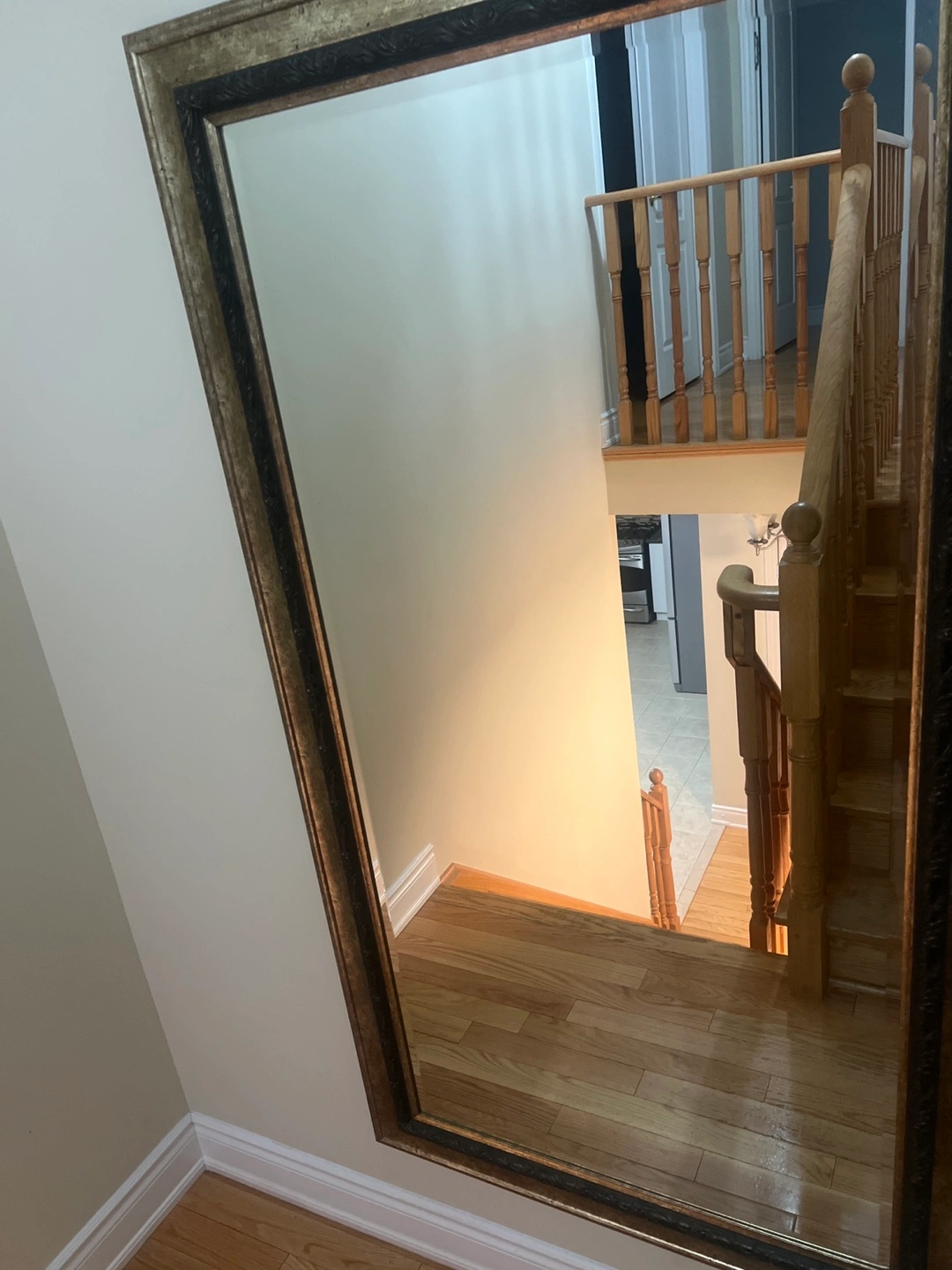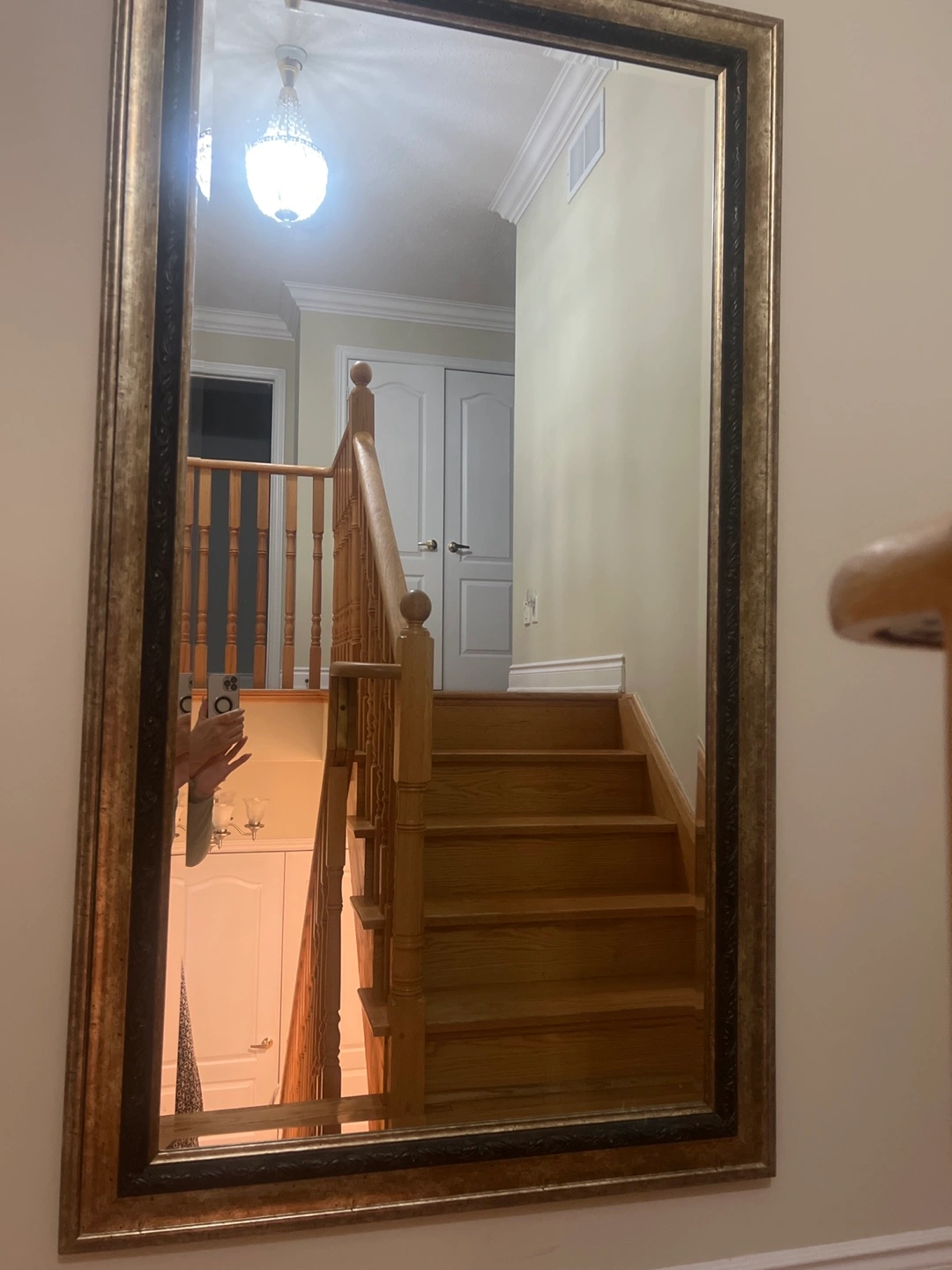 Rectangular mirror. Ornate frame. Adds visual depth to any room, or gives you one last check before heading out the door.