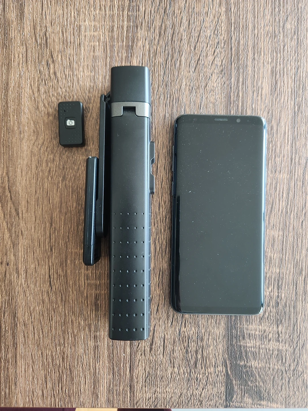 - Disclaimer: S9+ phone in photos is not included in sale of tripod; phone is used for size comparison and demonstration purposes only.