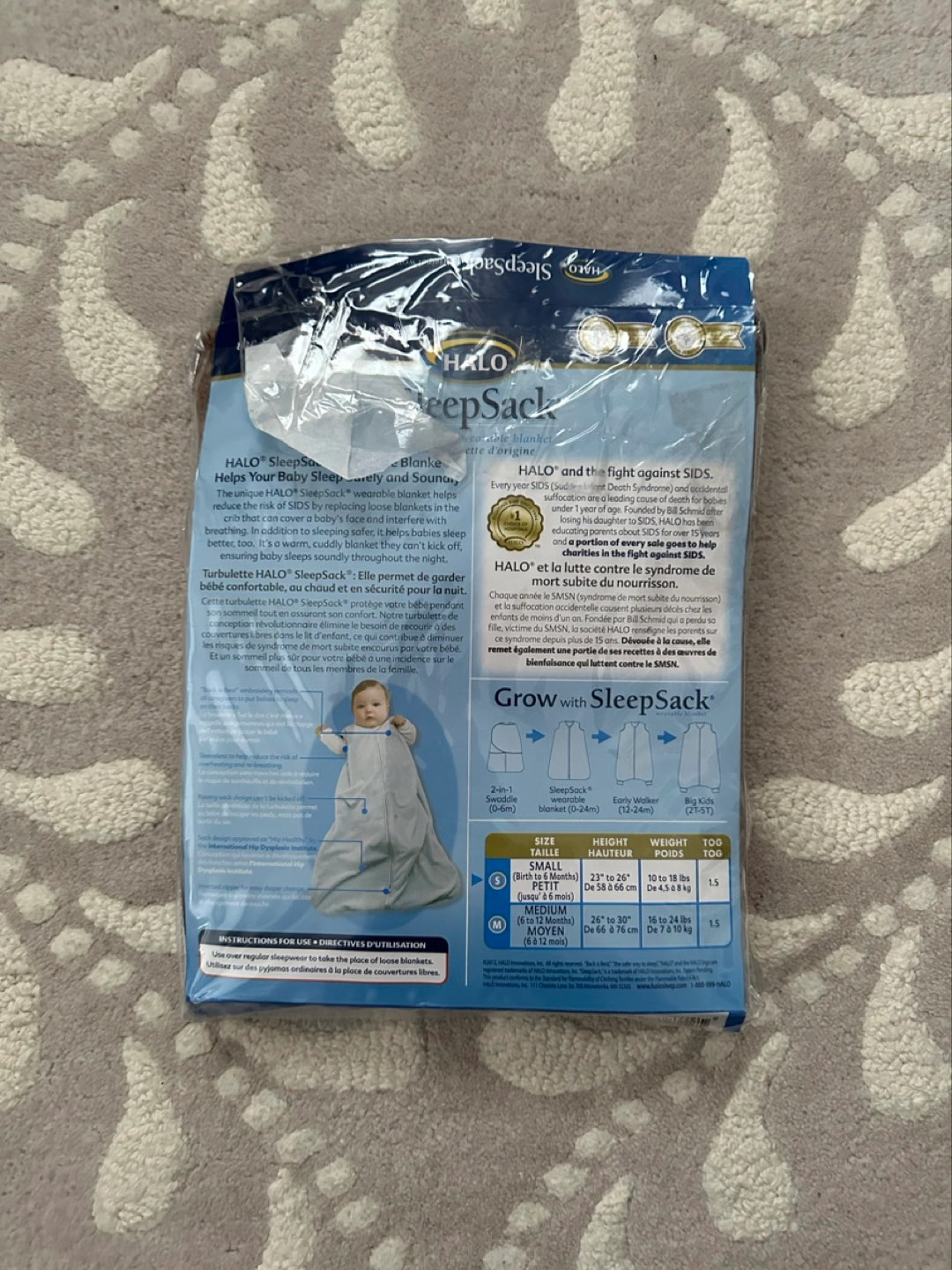 Size small (birth to 6 months) Halo brand sleep sack suitable for babies 10-18lbs. 1.5 TOG. Height 23-26”.