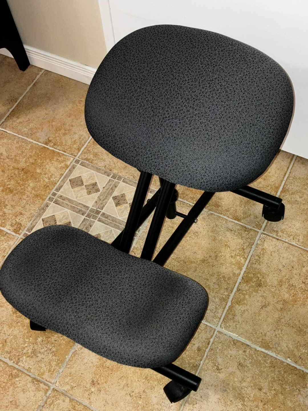 Gray kneeling chair in very good condition. From cat, dog, smoke free home.