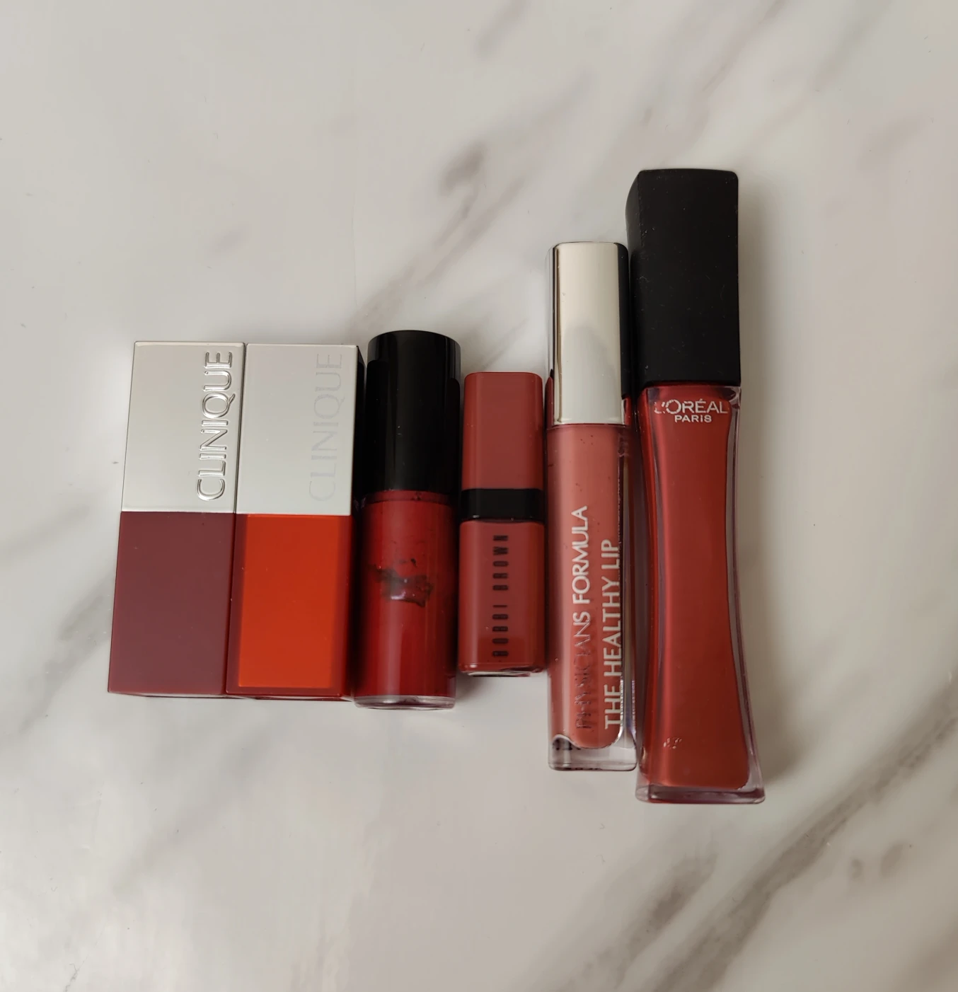 Six items included, as shown in pictures. Clinique Lipstick plum pop- plum Rosy nude Clinique lipstick fireball pop- red Lancome L'Absolu Lip gloss Cream 3ml each, Shade 371 Bobbi Brown crushed liquid lip smoothie move-moderately warm-toned, medium-dark plum Physicians formula Liquid lipstick- nude color Loreal Matte Lipgloss 314 $3 for all items Pick up 16 Ave/Yonge Hillcrest Mall No delivery available Thank you.